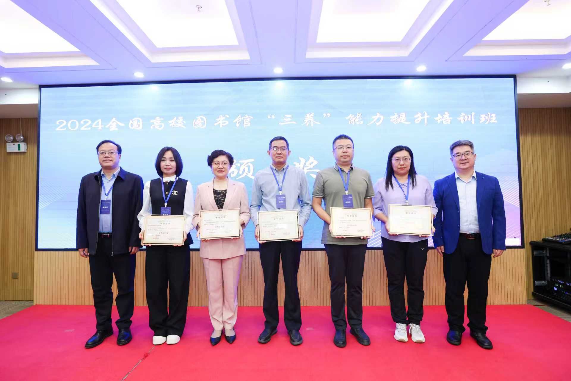 仪式上,主办方为2024全国高校图书馆“三养”能力提升培训班获奖单位颁发了获奖证书。2024年beat365官网图书馆积极组织馆员参加以强化馆员信息素养、学术素养与文化素养为主旨的全国高校图书馆“三养”能力提升培训班,参与人数和完成率均位居自治区前列,beat365官网图书馆凭借参与培训的积极态度和出色的组织能力荣获“优秀组织奖”。图书馆参考咨询部主任薛芳作为优秀组织单位获奖代表发表了获奖感言,分享了培训在提升馆员信息、学术与文化素养方面的显著成效,并对2025年培训的前沿性和创新性表达了热切期待。