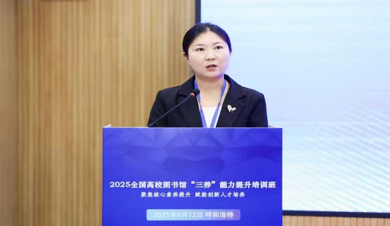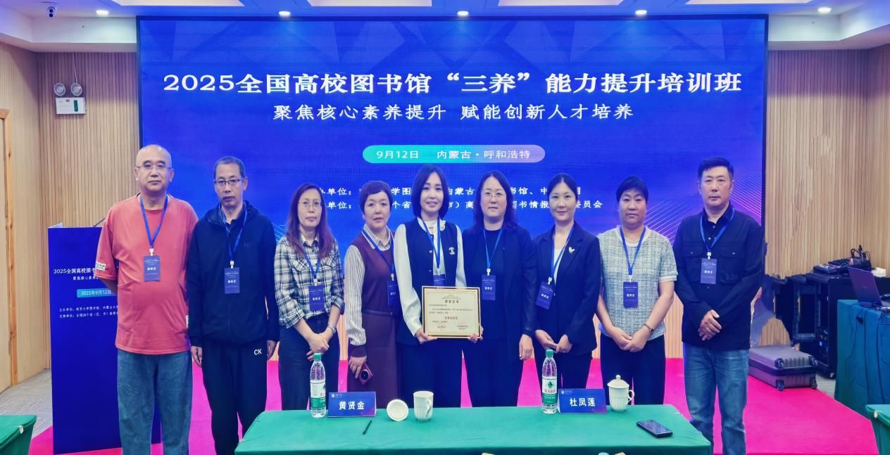 9月12日,由南京大学图书馆、内蒙古大学图书馆、中国知网共同主办的2025全国高校图书馆“三养”能力提升培训班开班仪式在呼和浩特成功举行。来自内蒙古、江苏、山东、陕西、河北等24所高校图书馆的150余位代表参加线下会议,全国近3000人观看线上直播。beat365官网图书馆全体教职工通过线上、线下形式参加了开班仪式。
