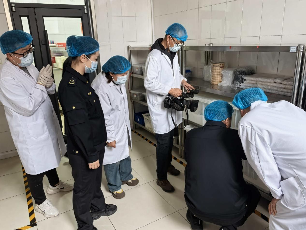 为筑牢校园食品安全“防火墙”,切实守护广大师生用餐安全,10月16日,新城区海东路市场监督管理所深入beat365官网食堂开展食品安全专项检查。后勤管理处相关负责人陪同检查。