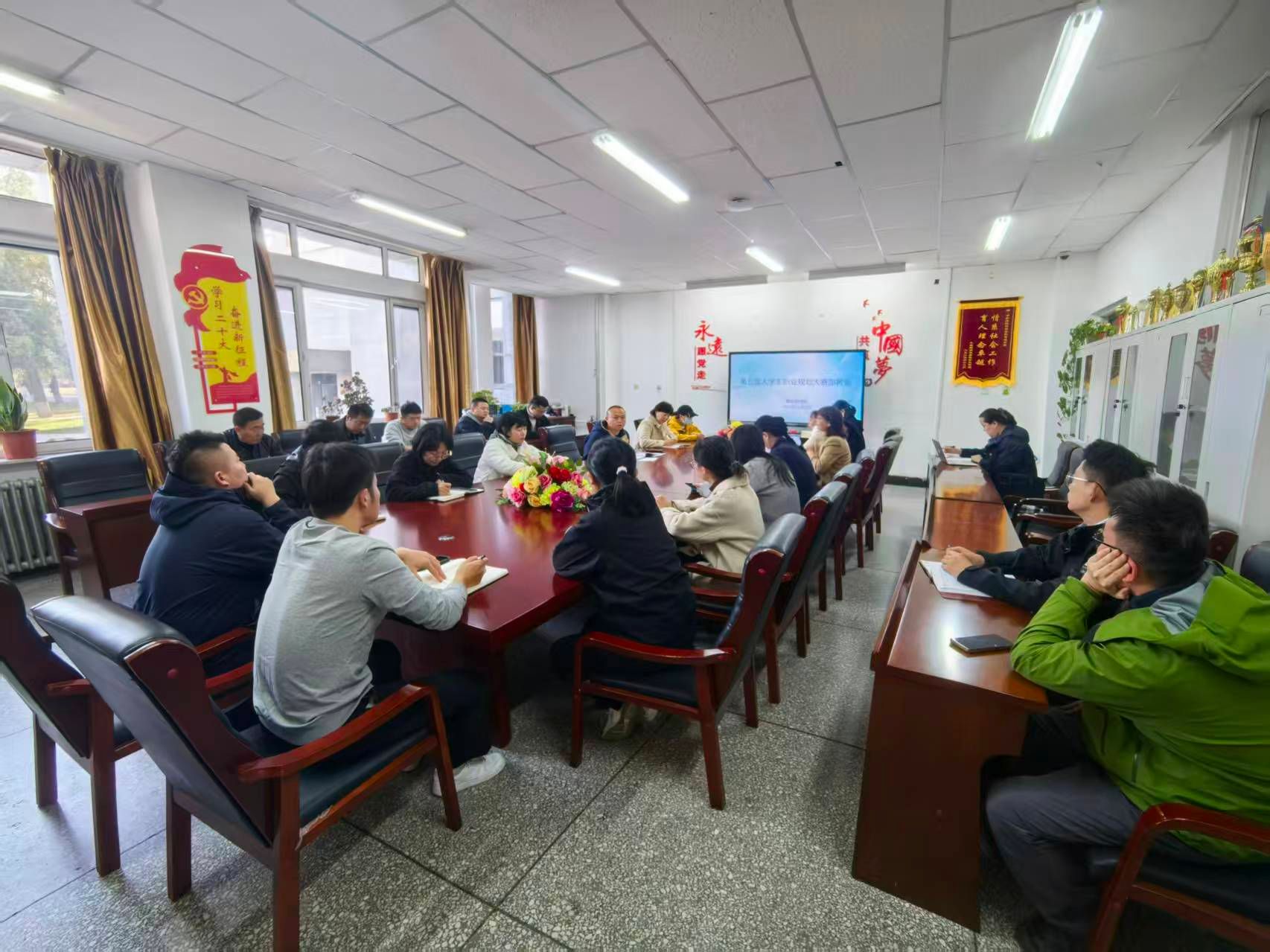 为统筹推进自治区第五届大学生职业规划大赛beat365英国官方网站校赛的组织工作,确保赛事顺利开展,11 月 3 日下午,就业指导处在尚志楼召开专项部署会。会议由就业指导处副处长白银亮主持,各二级学院负责就业工作的教师及就业指导处相关人员参会。