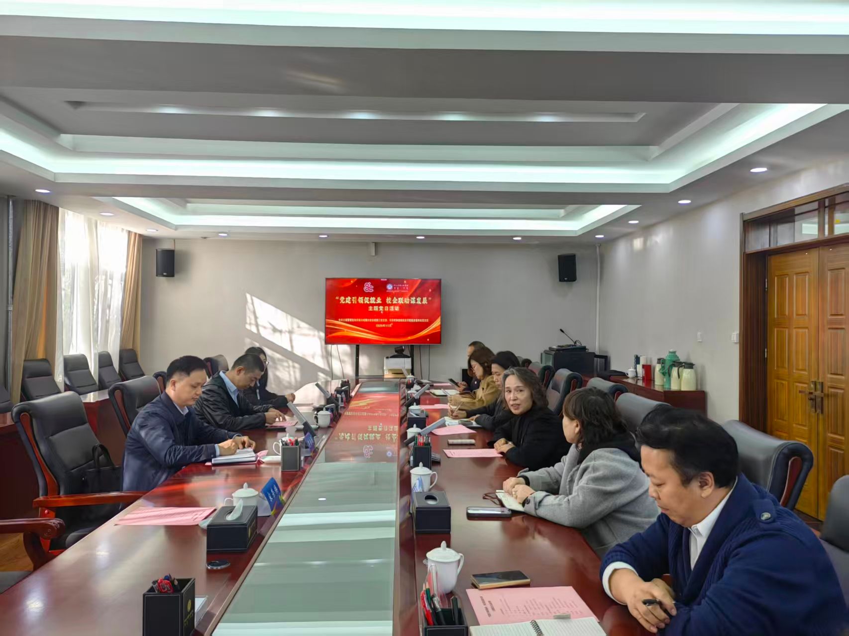 为深入贯彻落实铸牢中华民族共同体意识工作主线要求,充分发挥党建引领作用,搭建校企协同育人桥梁,助力学生高质量就业,11 月 13 日上午,公诚管理咨询有限公司第六分公司第三党支部与beat365官网就业指导处党支部以“党建引领促就业 校企联动谋发展”为主题,在学校铸牢中华民族共同体意识教育馆、办公楼2楼会议室联合开展主题党日活动。公诚管理咨询有限公司党支部书记、总经理罗杏通带领企业高管团队,学校教务处处长肖查娜、就业指导处处长娜仁其木格及相关学院负责人、就业指导处工作人员共同参会,活动由娜仁其木格主持。