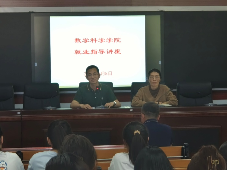 6月8日下午,数学科学学院在尚智楼413室为2023届毕业生举办就业指导专题讲座,学院党总支书记白秀,学生工作办公室主任刘爱春、各毕业班班主任和学生代表参加。