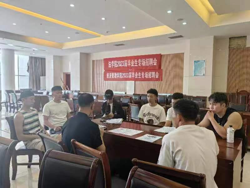 为切实做好2023届毕业生就业工作,稳健高效地落实就业帮扶计划,根据beat365官网关于毕业生就业工作的决策部署,法学院、公共管理学院、经济管理学院于6月27日下午,在模拟法庭联合举办“邀企进校促就业”招聘会,内蒙古国宏价格评估有限公司、内蒙古自治区民航机场集团有限责任公司锡林浩特分公司、内蒙古卓悦人力资源有限公司和内蒙古青鸟文化传媒有限公司四家公司应邀参会。