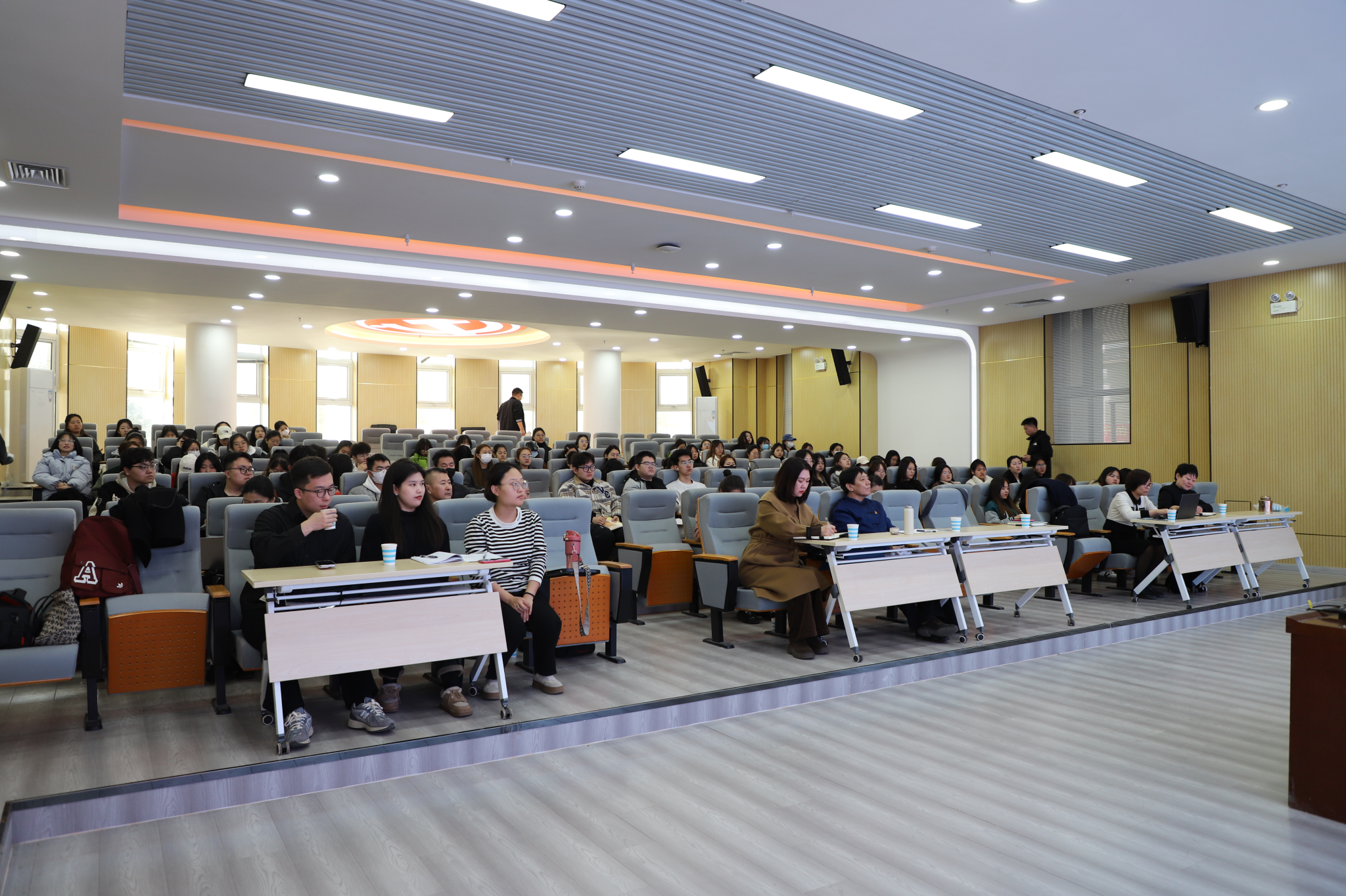 马克思主义学院党总支书记吴美荣、副书记韩琼及任课教师、学生代表到场聆听。