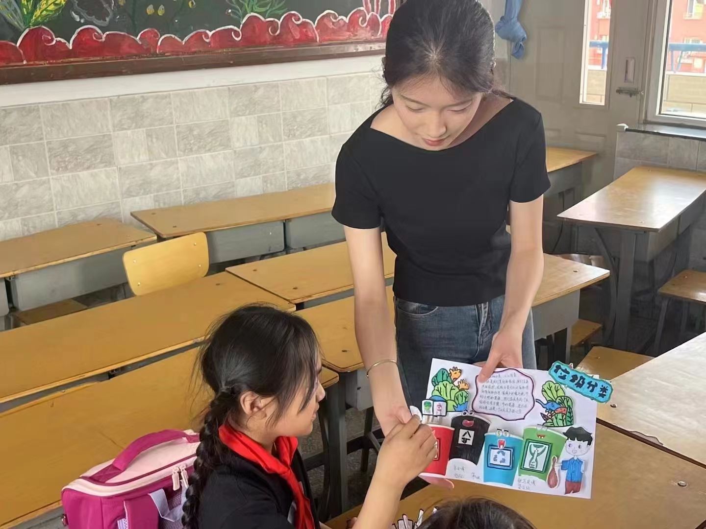 随后,第二组同学为二年级孩子们带来了一场题为《寻找伤心的纸》的环境教育课堂及互动游戏。活动现场,孩子们积极参与,气氛热烈欢快。通过指导孩子们亲手制作“纸的小档案”,让同学们认识到生活中废物回收的重要性,人人成为环保小卫士。