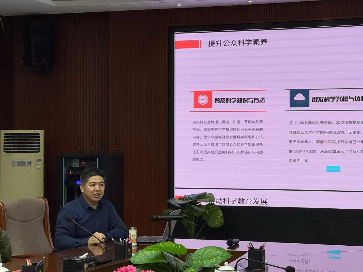 讲座邀请内蒙古师范大学党委宣传部副部长边建平、呼和浩特市环境科学学会理事长郭天鹏及呼和浩特市回民区科学技术协会主席井丽参加。边建平作了题为《如何发挥高校科普基地作用》专题报告。