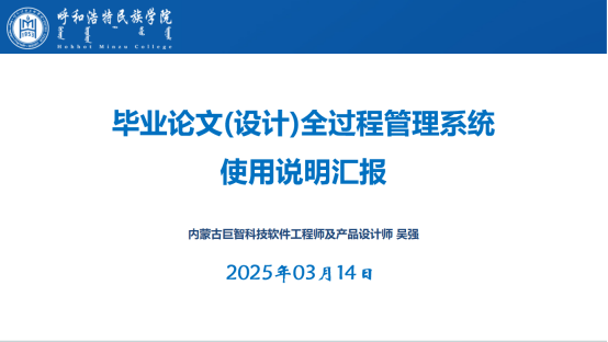 培训会上,重庆泛语科技有限公司(维普)肖丹通过列举生动案例,从抽检政策解读及应对、论文模板化撰写技巧、语言表达及格式排版、学术写作优化技巧与规范等四个方面开展系统培训,特别强调了毕业论文格式规范、引用标准及学术诚信的重要性。内蒙古巨智科技吴强针对毕业论文过程管理系统操作流程,对选题、任务书、开题报告、指导记录、查重检测、答辩管理、定稿管理及文件归档的全流程功能模块进行了详细说明和演示。