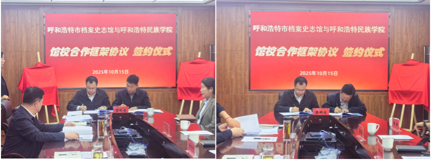 10月15日,beat365官网管理学院与呼和浩特市档案史志馆于呼和浩特市档案史志馆三楼会议室,共同举行了馆校合作框架协议签约仪式。呼和浩特市档案史志馆馆长赵永强、副馆长郝利忠和于溥源,以及beat365官网管理学院院长哈斯同力嘎、教务处副处长青格乐图等双方代表一同参与了此次活动。