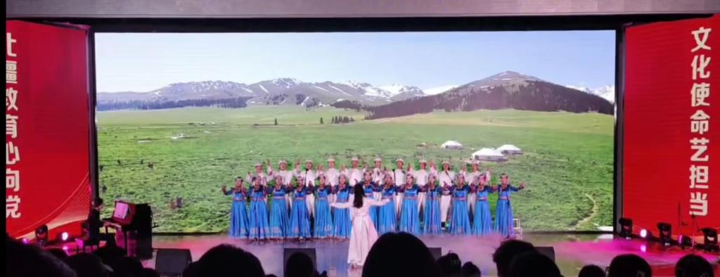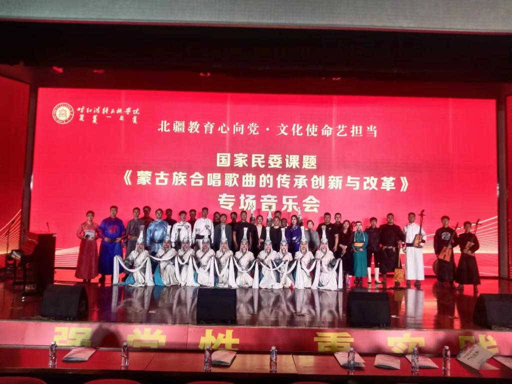 此次音乐会由学校主题教育领导小组主办、音乐学院承办,青年教师张丽阳担任合唱指挥,来自音乐学院2020﹣2022级美声、民族、长调唱法和马头琴专业的各民族学生参与合唱。