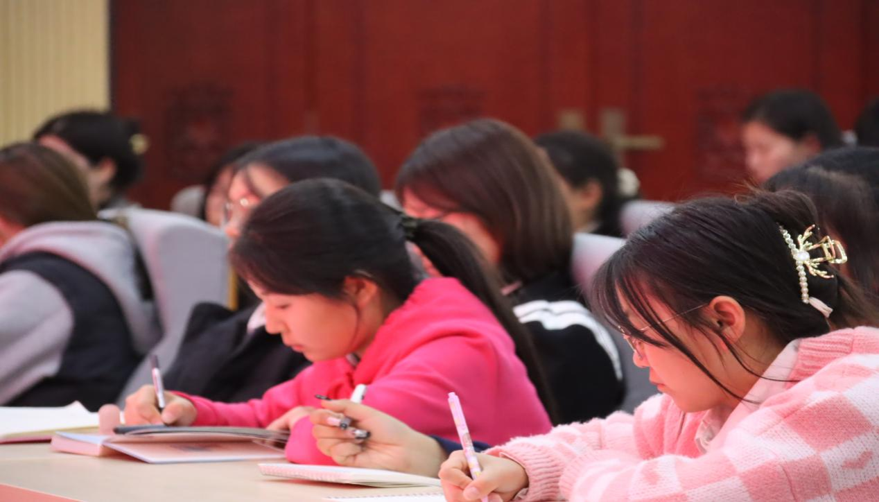 马克思主义学院团总支负责人关欣冉,思想政治教育专业150余名学生聆听宣讲报告。