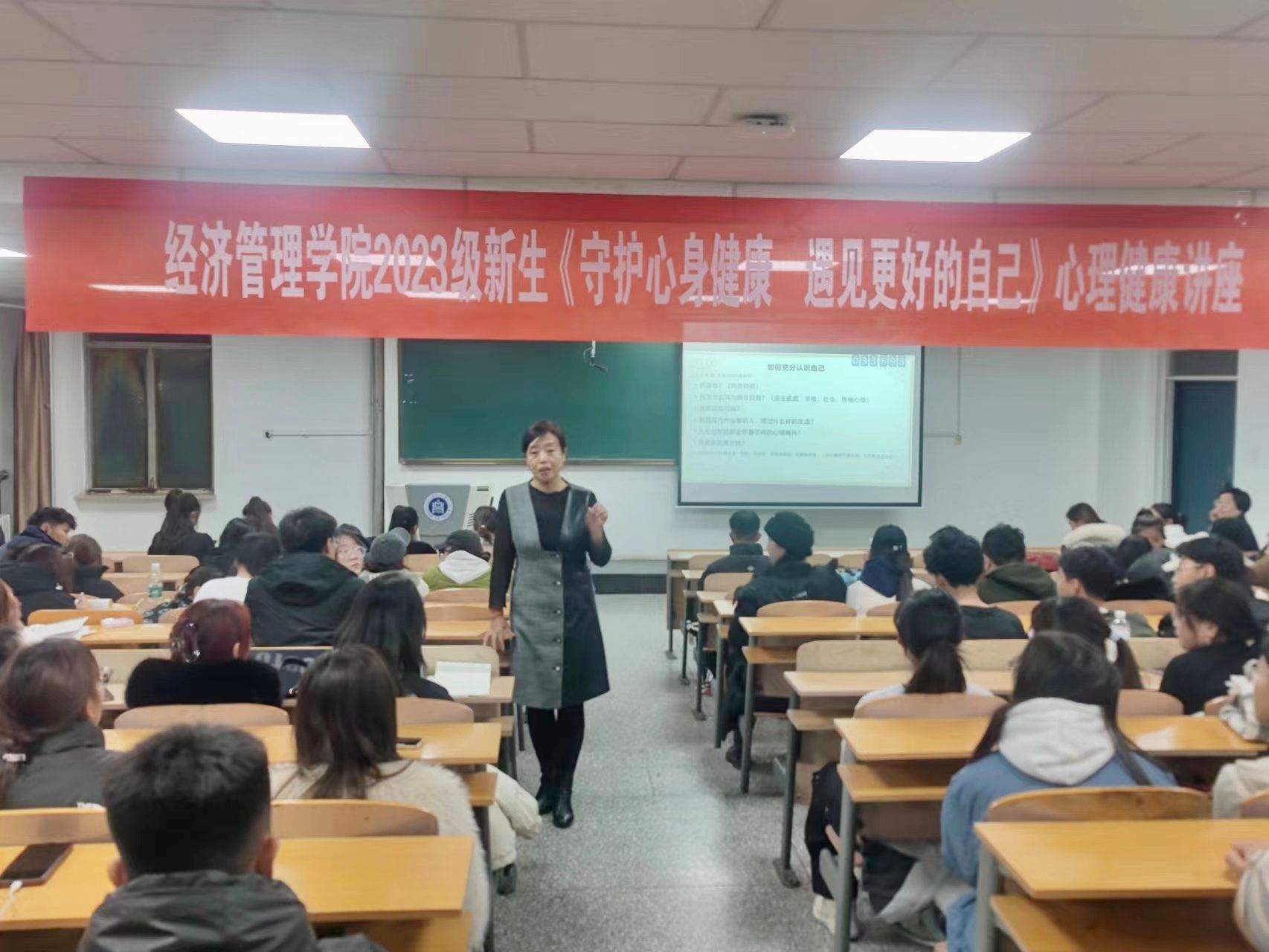 为推进经济管理学院心理健康教育工作,帮助学生深入了解心理健康教育相关知识,提高自身身心健康调节能力,培养良好心理品质。11月22日,经济管理学院邀请内蒙古国际蒙医医院心身医学科创始人之一、心身医学科副主任白香辉教授,开展了题为《守护心身健康,遇见更好的自己》心理健康讲座。讲座由经济管理学院院长包诺敏主持,全体2023级新生参加了此次讲座。