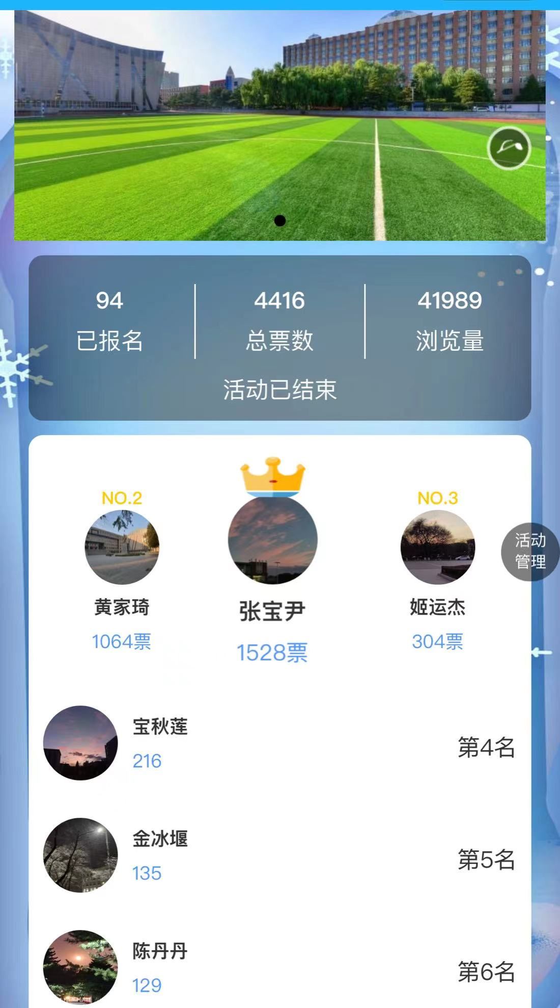 本次活动通过参赛学生报名投稿摄影作品、通过网络投票作品等环节,最终张宝尹同学荣获一等奖,黄家琦、姬运杰两名同学荣获二等奖,宝秋莲、金冰堰、陈丹丹三名同学荣获三等奖。