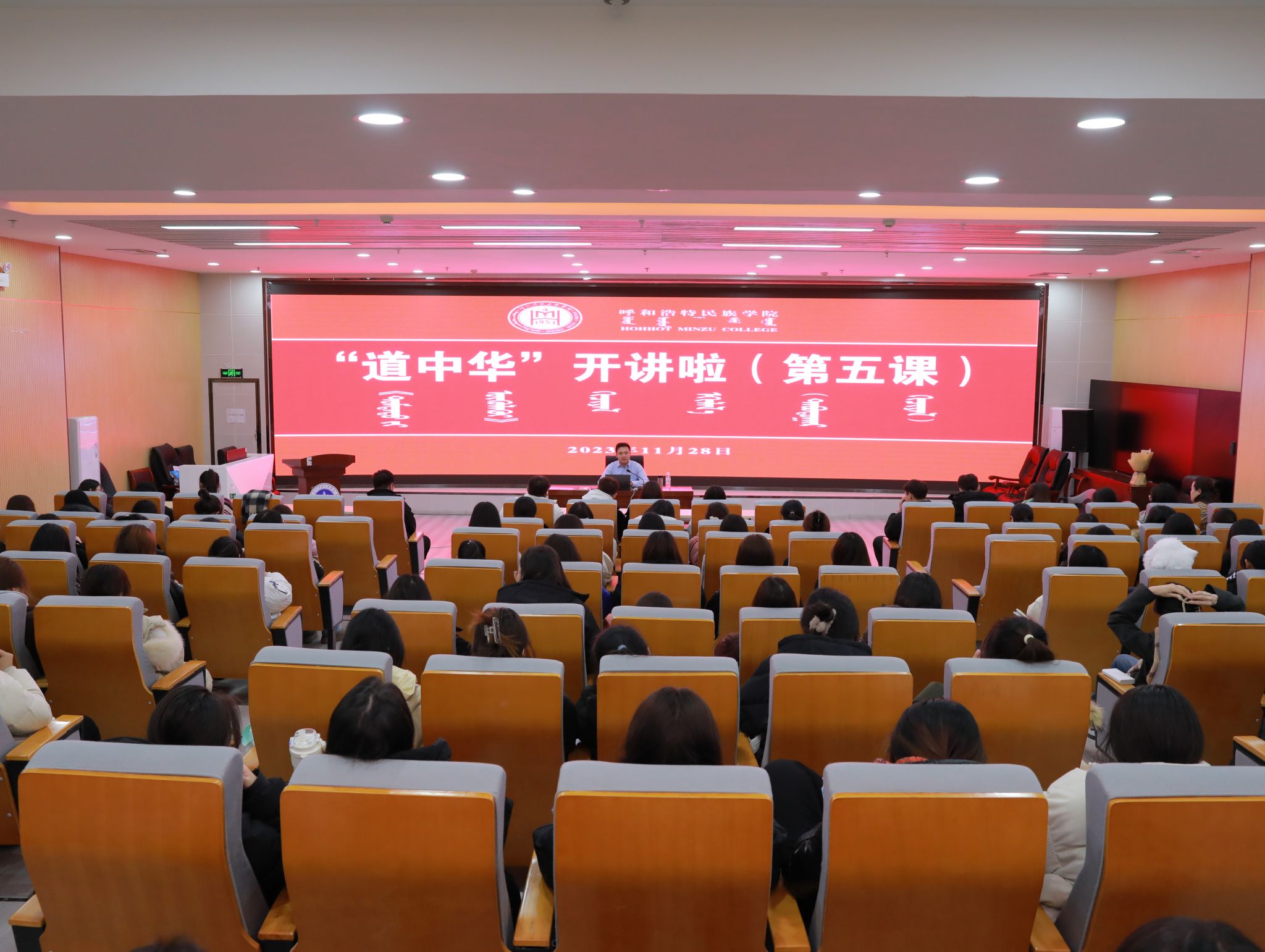 本次专题讲座,重点围绕学习贯彻党的二十大精神和习近平文化思想,旨在进一步坚定各族师生文化自信,让全体学生深刻领会“道中华之美,美中华之道”的丰富内涵,注重古为今用,提升个人修养,立足实践,为强国建设、民族复兴伟业汇集青春力量。