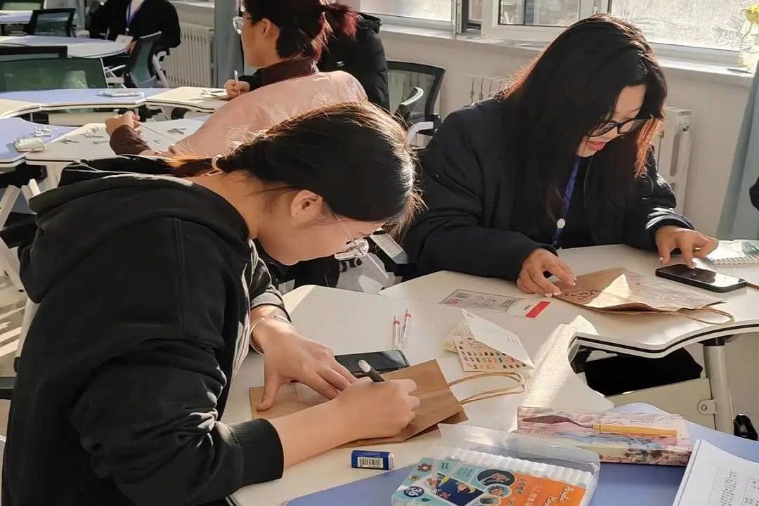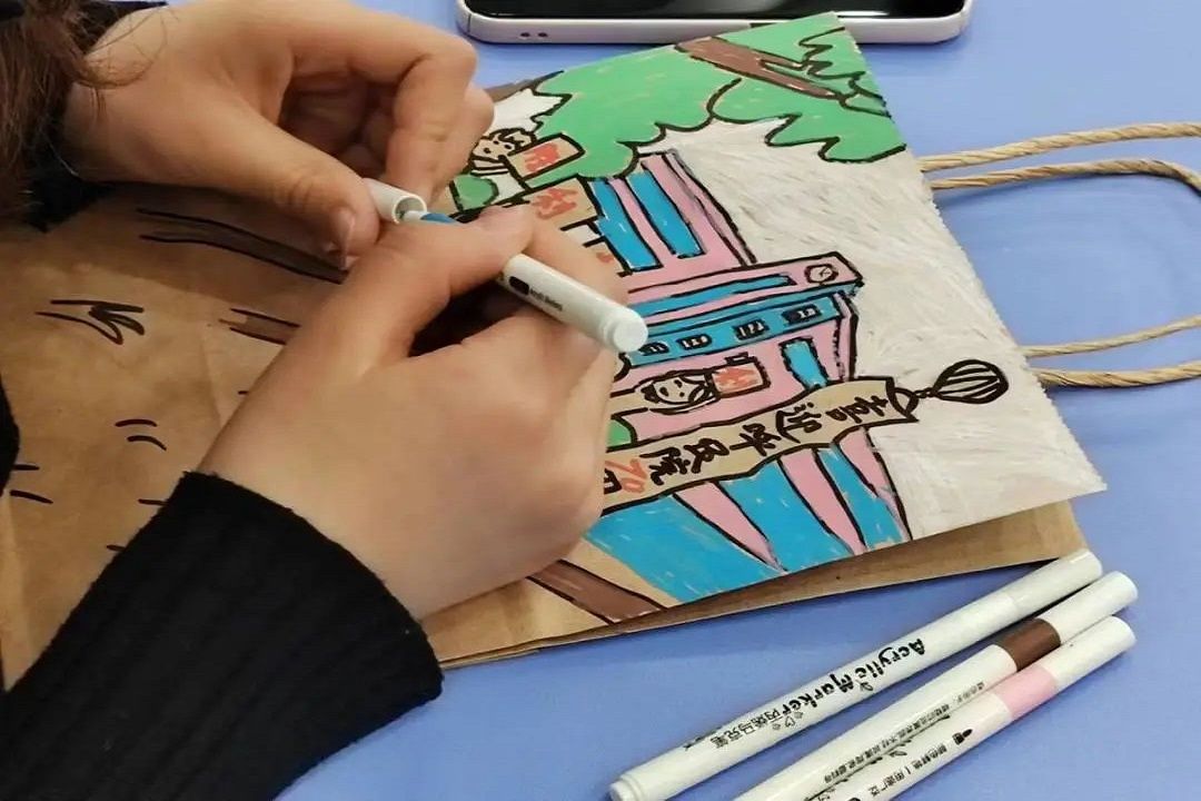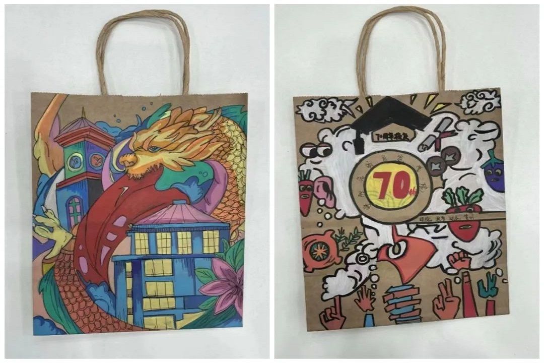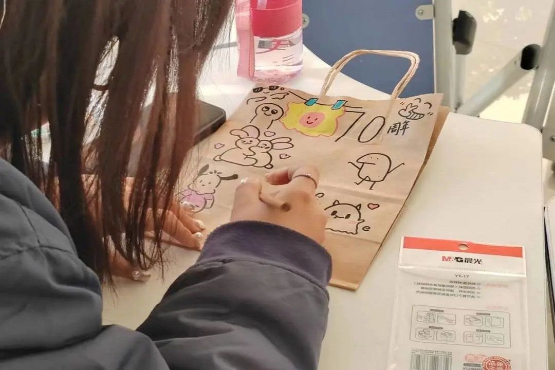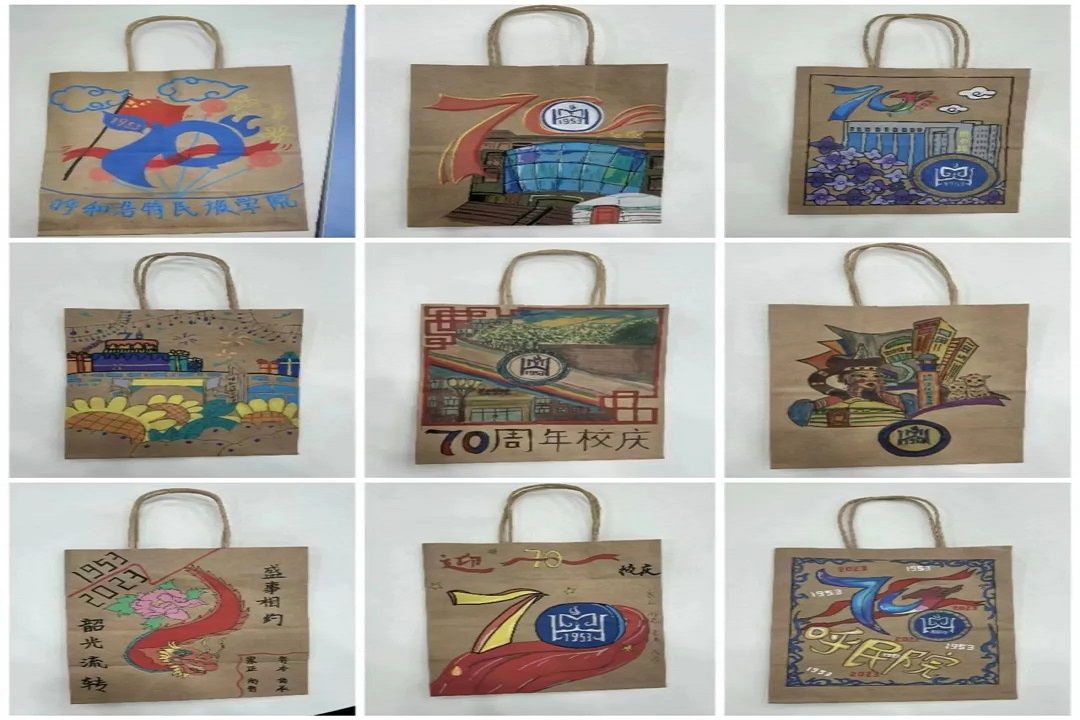 活动伊始,来自各学院的参赛选手热情洋溢来到活动现场,大家挥动手中的画笔,在小小的纸袋上用五彩缤纷的颜色描绘出自己心中的呼民院,用自己的方式表达对母校最真挚的祝福。