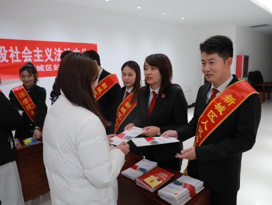 为大力弘扬宪法精神树立宪法权威,12月5日,学校党委宣传部、法学院共同联合新城区司法局、新城区法院、新城区民委、新城区妇联共同在校园内开展了“大力弘扬宪法精神,建设社会主义法治文化”主题宣传活动。