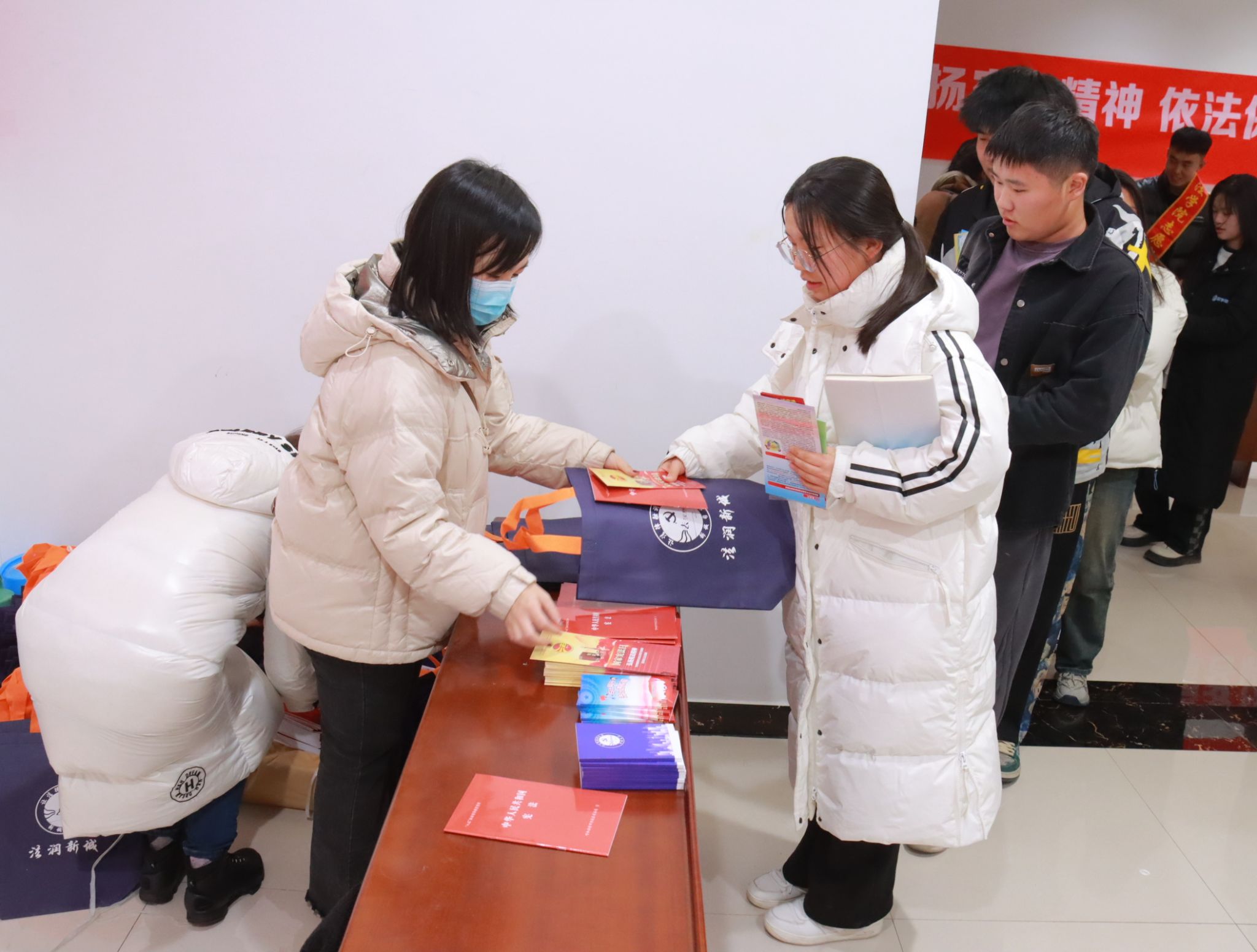 活动中,法律宣传工作人员通过悬挂宣传标语,向师生发放《中华人民共和国宪法》《国家宪法日》等宣传手册,现场讲解宪法知识等方式帮助同学们了解宪法,拥护宪法,鼓励大家成为宪法的忠实崇尚者、自觉遵守者、坚定捍卫者。