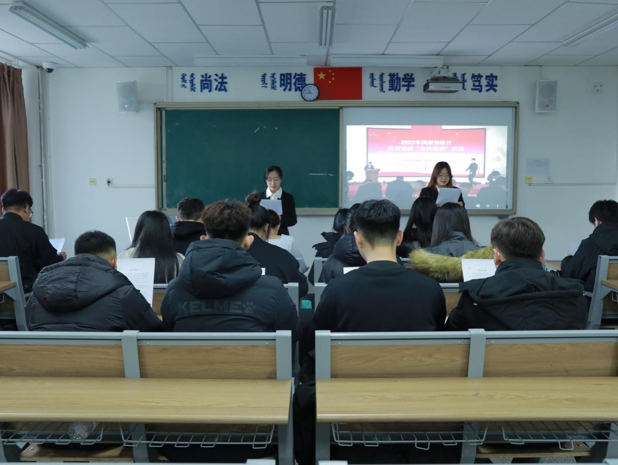 为认真学习宣传贯彻党的二十大精神,贯彻落实习近平法治思想,根据内蒙古自治区教育厅《关于开展2023年全区教育系统“宪法宣传周”系列活动的通知》、学校开展“宪法宣传周”系列活动的相关要求,法学院于12月7日在尚智楼教室开展了宪法晨读活动,50余名师生参与晨读。