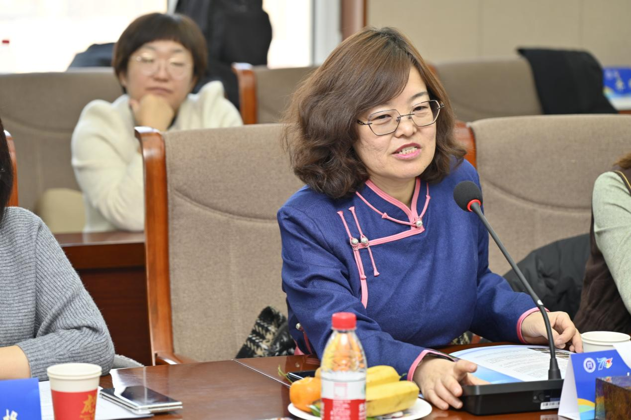 座谈会由乌兰其其格主持。胡春香首先代表学院对校友们的归来表示热烈欢迎,对校友们长期以来对母校的关心和支持表达了衷心感谢,她简要回顾了学院的发展历程,介绍了学校以及学院在学科建设与科研成果、人才培养与招生就业、办学规模扩大和办学条件改善等方面取得的成绩,在广大校友始终秉持“尚法、明德、勤学、笃行”的院训精神,立足岗位,用自己的青春、奋斗和成就,为社会做出了贡献,也为母校赢得了良好的社会声誉,母校为校友们取得的成绩感到骄傲自豪。随后,魏庭欢作为退休教师代表对校友的到来表示热烈的欢迎,并为校友的事业发展回馈母校的情怀表示真诚的谢意,把最诚挚的祝福送给各级校友。接着,各位校友代表进行了交流,1999级法学班的毕业生卓资县县委常委、副县长云升对学院和曾经的任教教师表示由衷的感谢,并简要介绍了自己工作履历、经验和对学院未来的发展表示真切的期望。2003级法学2班校友代表那木拉律师简要回顾了法学院当年发展状况,对学校目前蓬勃发展由衷感慨,还对学院在校学生分享了学习和工作经验,鼓励他们认真学习,力争为社会做贡献。最后乌兰其其格表示,校友是母校发展的见证者,也是母校发展的推动者,是学校建设发展最可依靠的力量和最宝贵的资源,近年来学校高度重视校友联络工作,牵挂校友发展,将以本次座谈会为契机,逐步推进各项合作,进一步为校友搭建平台,尽心尽力做好校友服务工作,并真切地对校友表示欢迎校友们常回家看看。