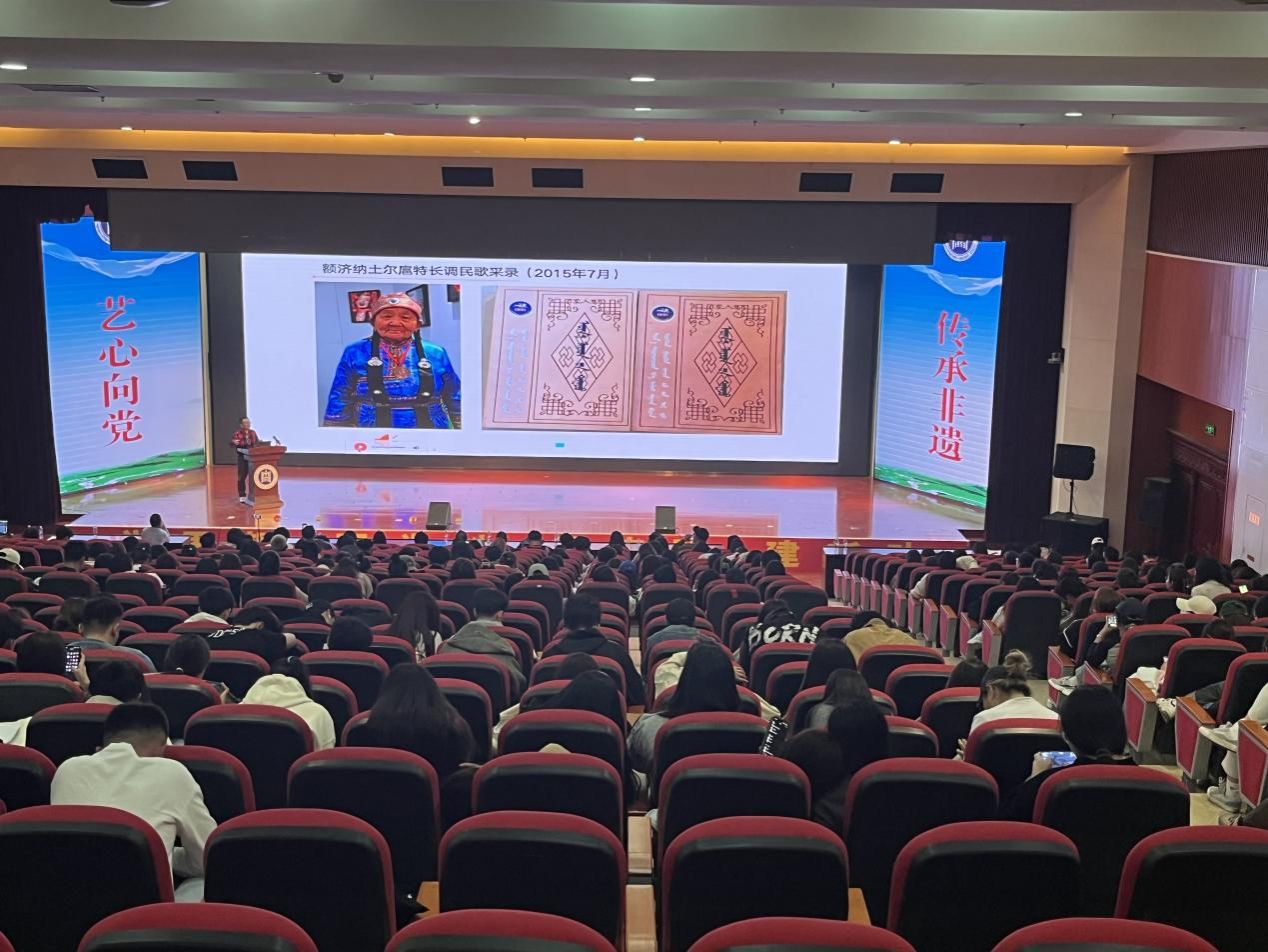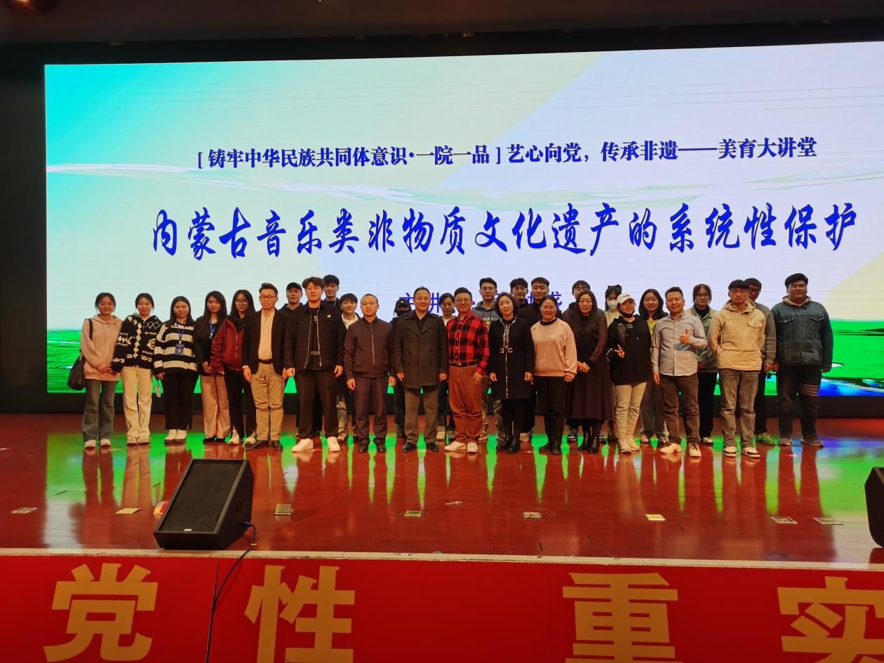 为进一步学习宣传贯彻党的二十大精神,落实立德树人根本任务,全面加强大学生美育工作,推进非物质文化遗产进校园,3月27日,学校在北院图书馆二楼报告厅举办了“艺心向党 传承非遗”美育大讲堂专题讲座。本次讲座由教务处、统战部主办,音乐学院承办,邀请内蒙古艺术研究院二级艺术评论员、教育部青年拔尖人才张劲盛为beat365官网师生作了题为“内蒙古音乐类非物质文化遗产的系统性保护”的学术讲座。讲座由音乐学院院长韩木兰主持。