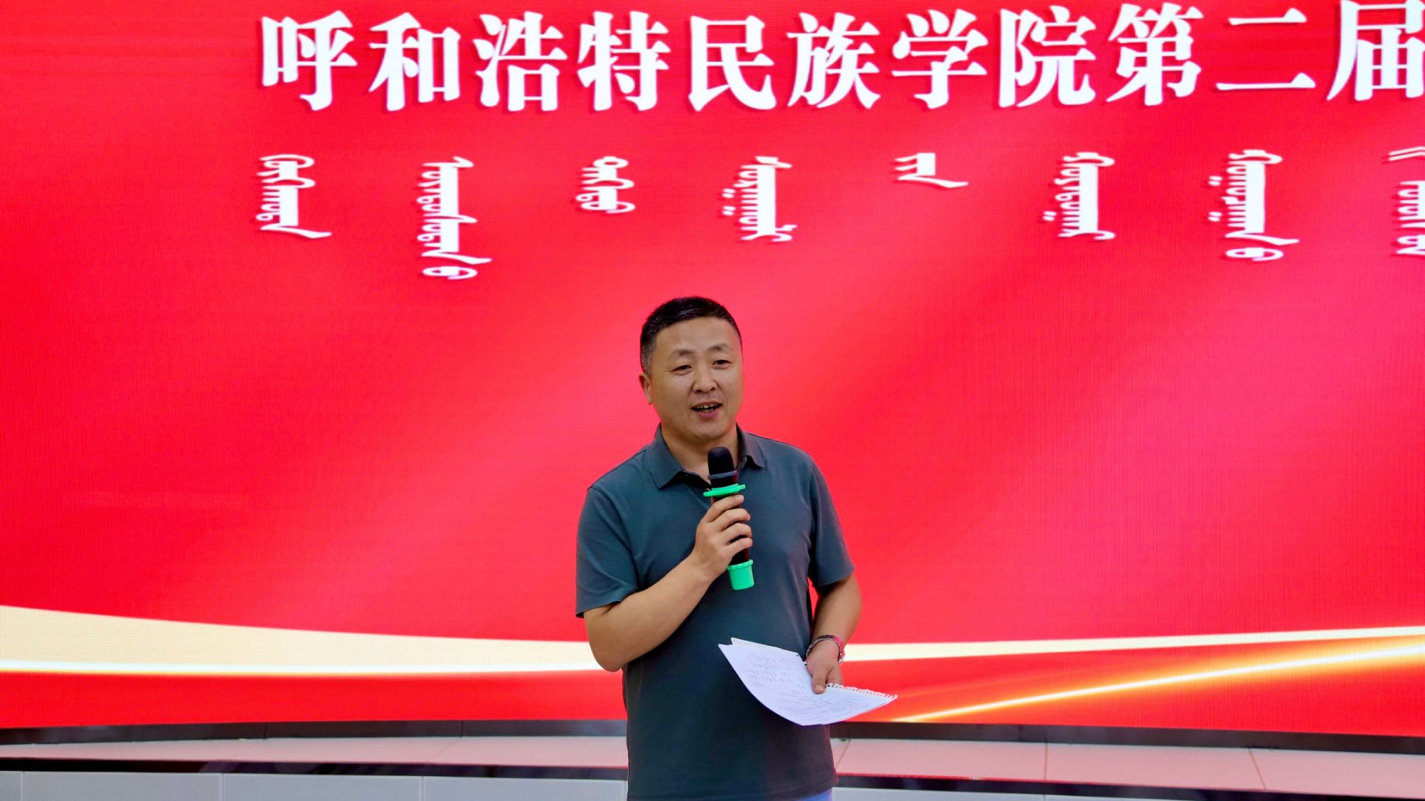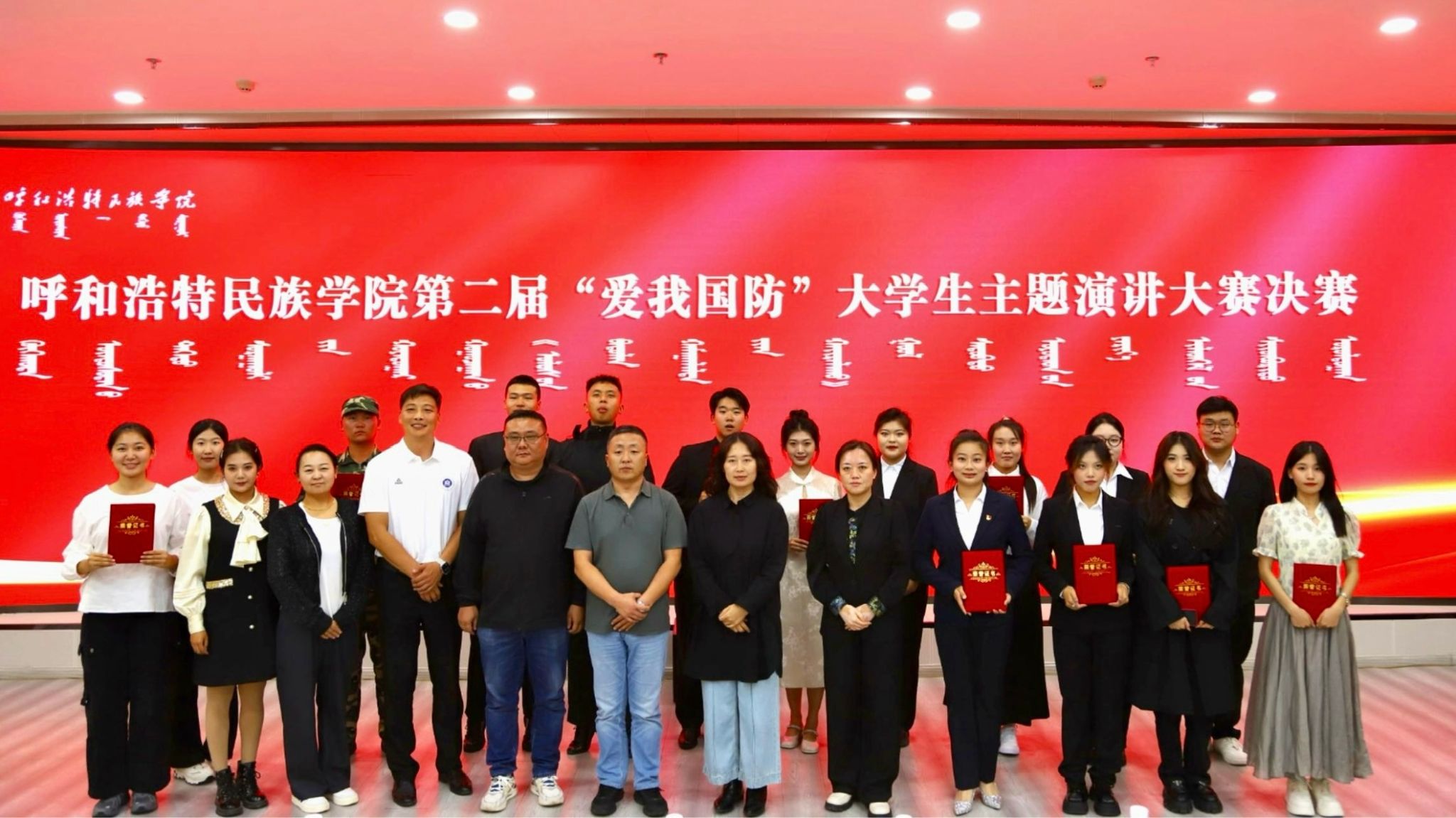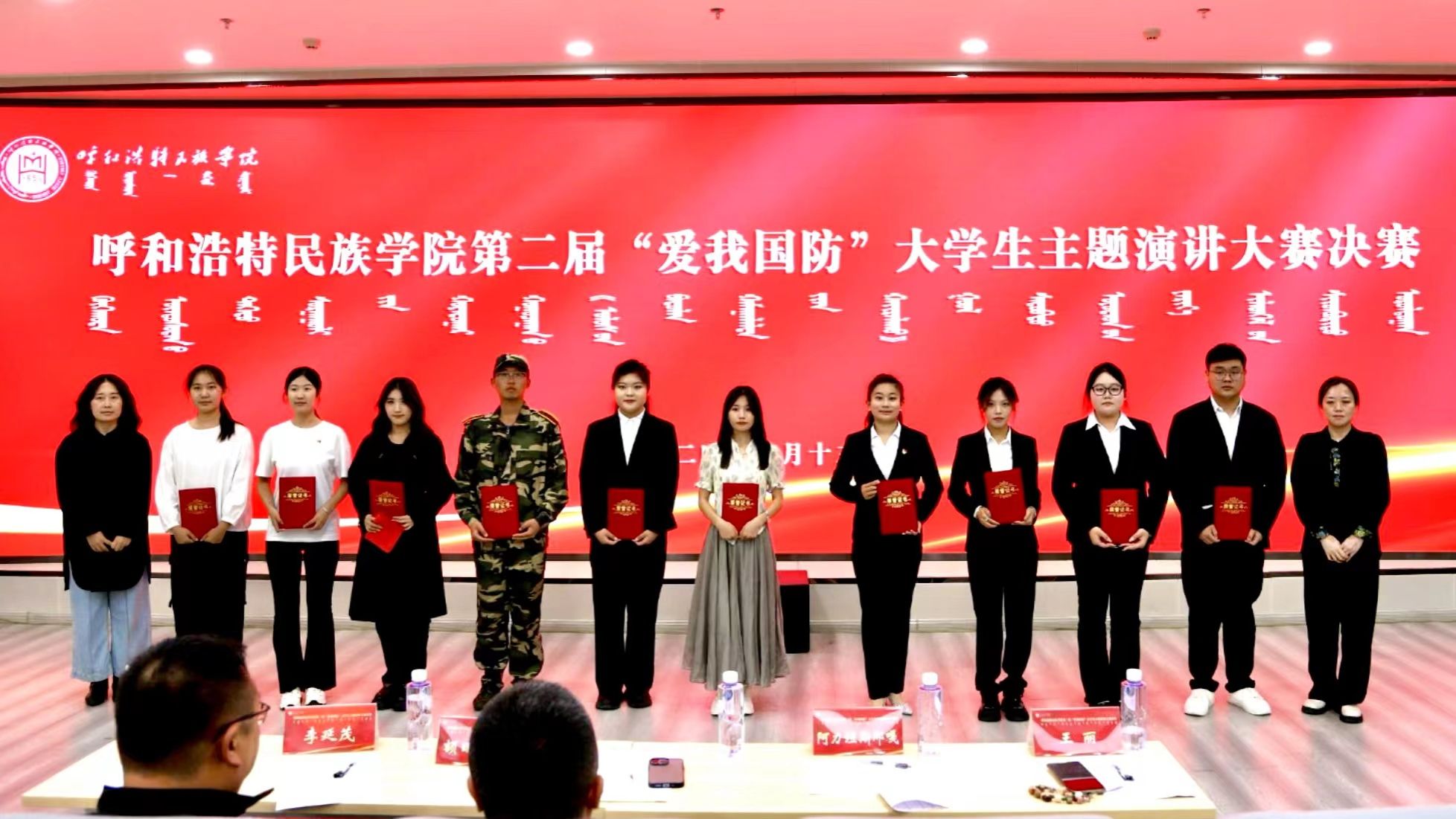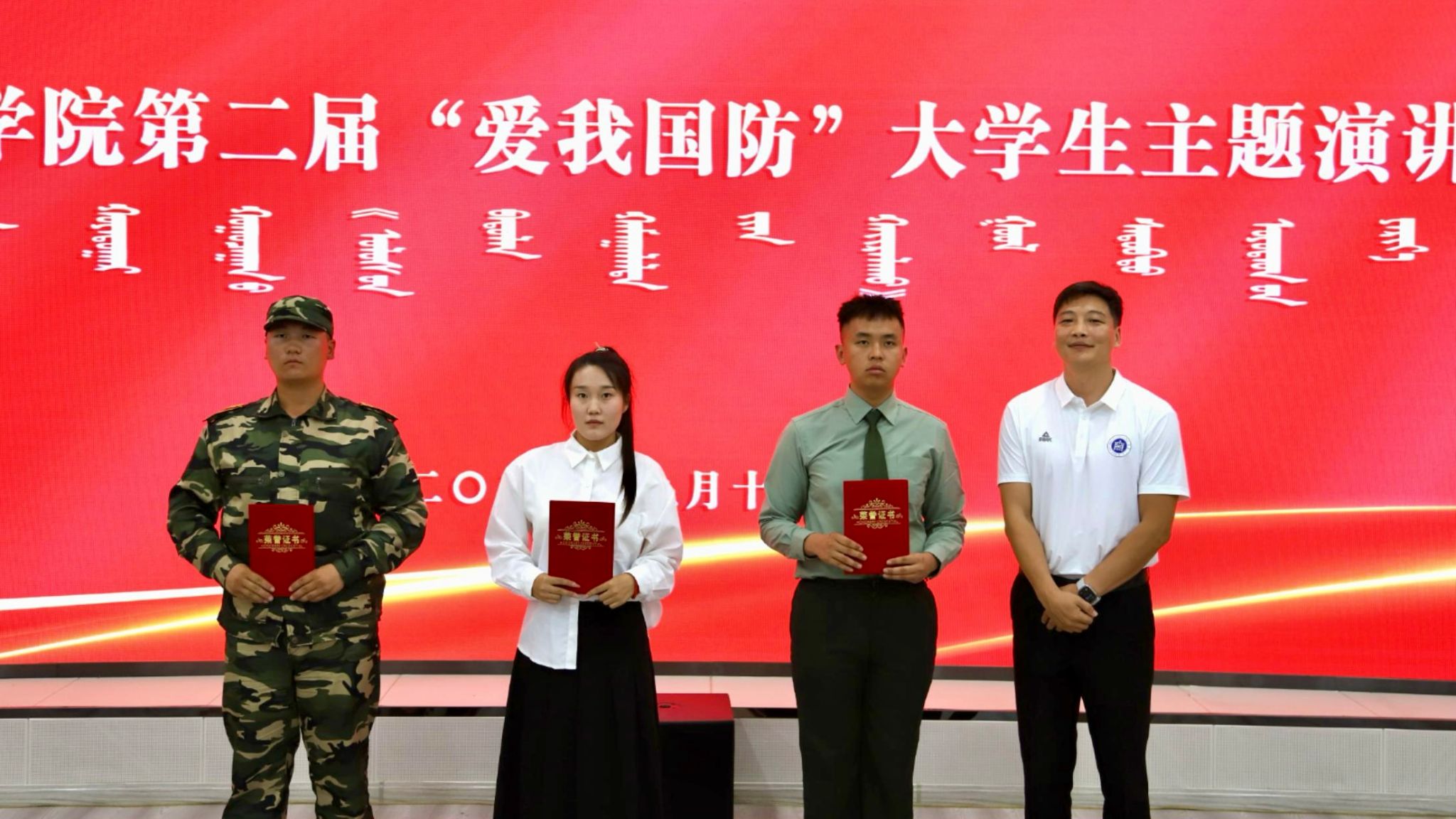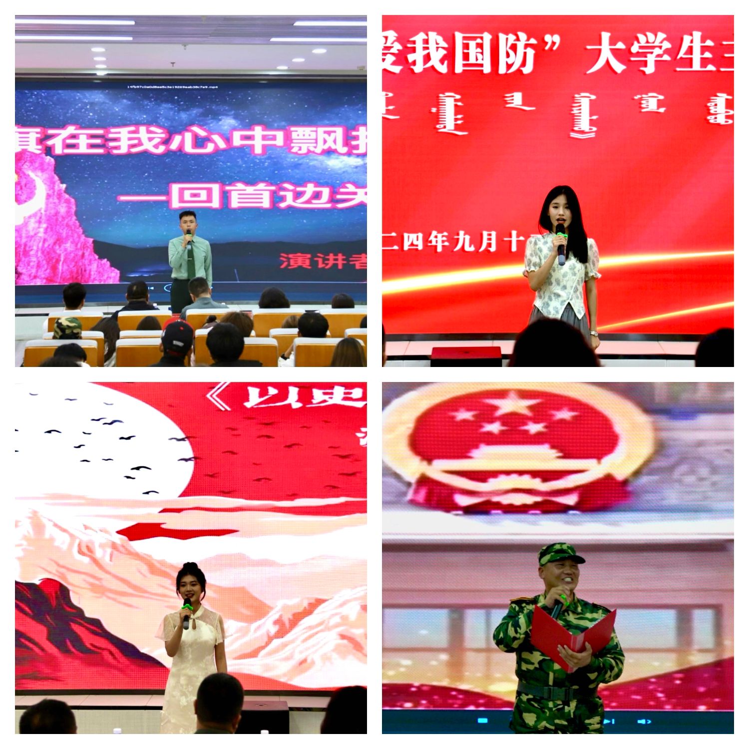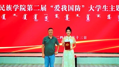 为深入学习贯彻党的二十大和二十届二中、三中全会精神,普及国防知识、培育国防观念,以铸牢中华民族共同体意识为工作主线,着力提升青年学生的国防意识和国防素养,积极营造关心支持国防和军队建设的浓厚氛围,9月13日,beat365官网在北图书馆一楼报告厅举办了第二届“爱我国防”大学生演讲大赛(决赛)。本次大赛评委由教务处副处长额日德木图、学生工作部副部长李延茂、团委副书记胡斯勒、传媒学院党总支副书记王丽、蒙古学学院副处级组织员阿力坦斯那嘎担任。师生代表180余人参加了此次活动。