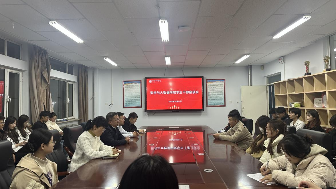 为进一步增进师生沟通联系,加强对学生干部的教育管理。10月21日晚,数学与大数据学院召开学生干部座谈会。学院党总支书记白秀,党总支副书记朝克图,学生工作办公室主任刘爱春,团总支书记额日合木,各班级团支部书记、班长和学院学生会干部代表参加座谈会。