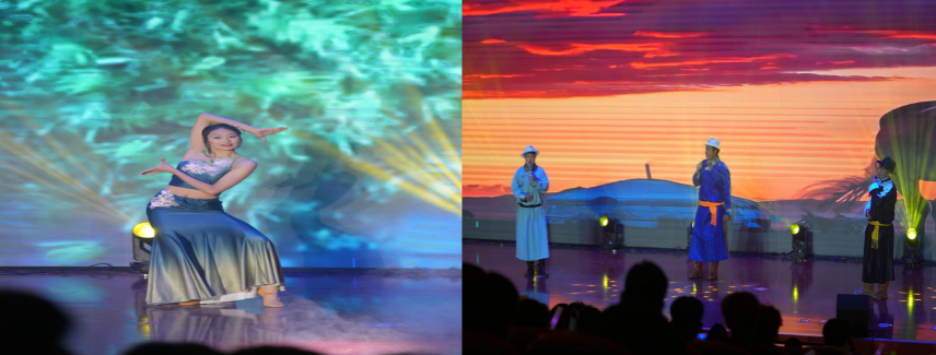 晚会在激昂的马头琴曲中拉开帷幕,节目内容丰富多样,涵盖群舞、独舞、独唱、三重唱、葫芦丝独奏、舞狮表演、诗朗诵、情景剧、武术表演、拉丁舞、健身操、合唱等多种形式。