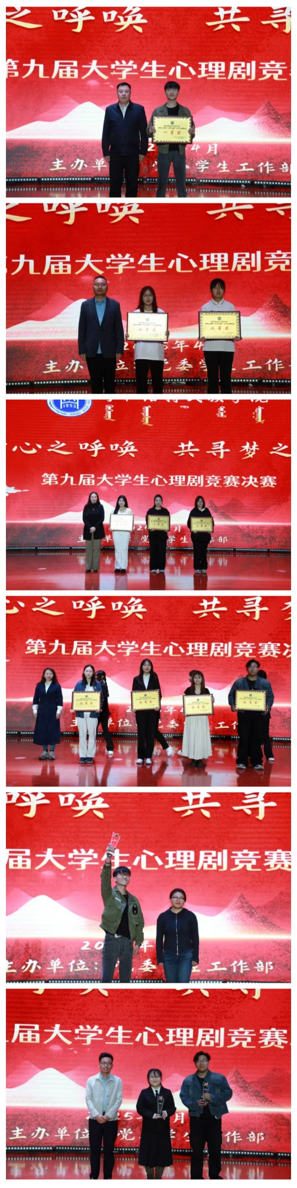 根据教育部关于加强新时代学生心理健康教育工作的文件精神,助力构建温暖向上的成长环境,为校园文化注入活力,4月24日,学校在北图书馆二楼举办“聆听心之呼唤,共寻梦之彼岸”第九届大学生心理剧竞赛决赛。本次决赛由校党委学生工作部心理健康教育中心主办,吸引了500多名师生到场观看,线上直播观看量达两千多人次。