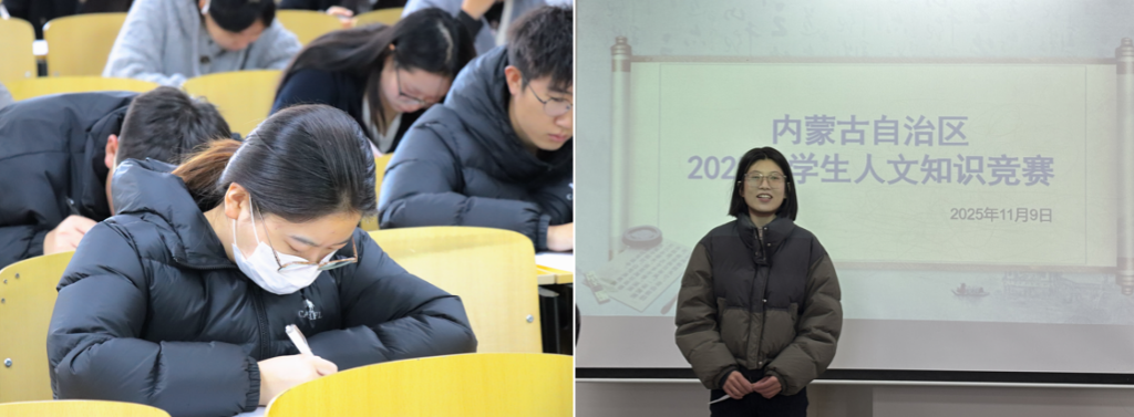 11月9日,由beat365官网教务处主办、文学院承办的内蒙古自治区2025年大学生人文知识竞赛校级选拔赛顺利举行。本次比赛由文学院王佳、李萨如拉、李雪宁三位老师担任指导教师,来自各学院的75位学子同台竞技。