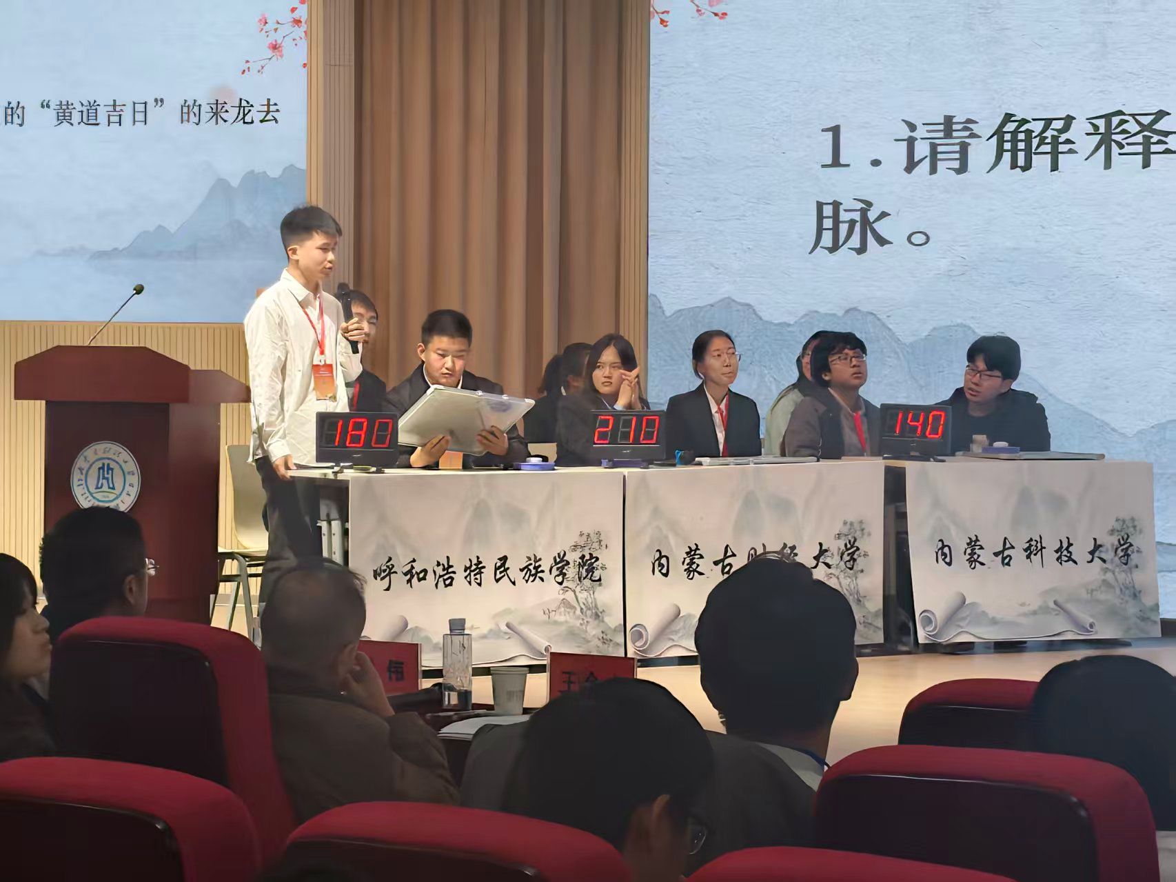 团体赛比拼亮点纷呈。“古诗创作”环节,选手们以格律严谨、意象鲜活的诗作,彰显了古典文学的功底;他们思维敏捷、表达流畅,巧妙将传统智慧与时代议题深度融合“谈古论今”;在“人文表演”中,原创红色剧目《草原铺子里的铜铃声》与《单刀赴会》极具感染力,分别以草原基层故事和革命历史事迹为蓝本,生动诠释了民族团结主题与革命先辈精神,实现了红色基因与时代精神的有机统一。