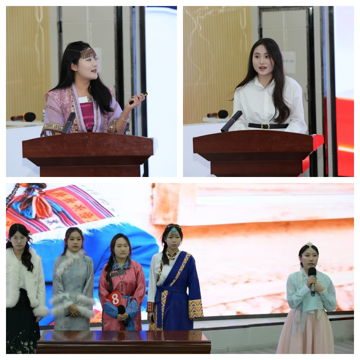 为持续推进铸牢中华民族共同体意识教育走深走实,搭建师生交往交流交融的平台,传承弘扬各民族优秀传统文化,推进“一院一品”建设,12月12日,由学校党委统战部主办、管理学院承办的第四届“五十六个民族五十六朵花”服饰文化与民俗文化讲述大赛在铸牢中华民族共同体意识教育馆一楼举行。校党委委员、统战部部长朝格吉乐图,管理学院党总支书记格日乐、院长哈斯同力嘎、副院长额尔敦格日乐、党总支副书记阿力坦斯那嘎与师生150余人参加活动。