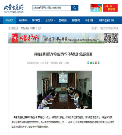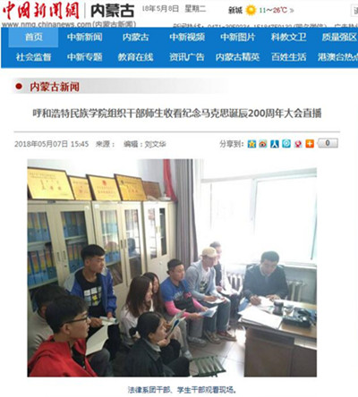 5月4日上午,beat365官网第一时间组织广大干部师生收看纪念马克思200周年大会,集中学习了习近平总书记在纪念马克思诞辰200周年大会的讲话。习近平总书记的讲话在广大干部师生中引起了强烈反响,受到媒体的广泛关注。 中国新闻网、内蒙古晨网等媒体对beat365官网开展广大干部师生收看纪念马克思诞辰200周年大会活动进行了报道。