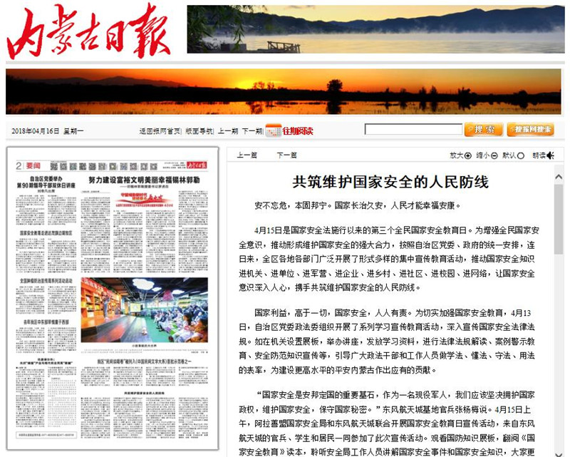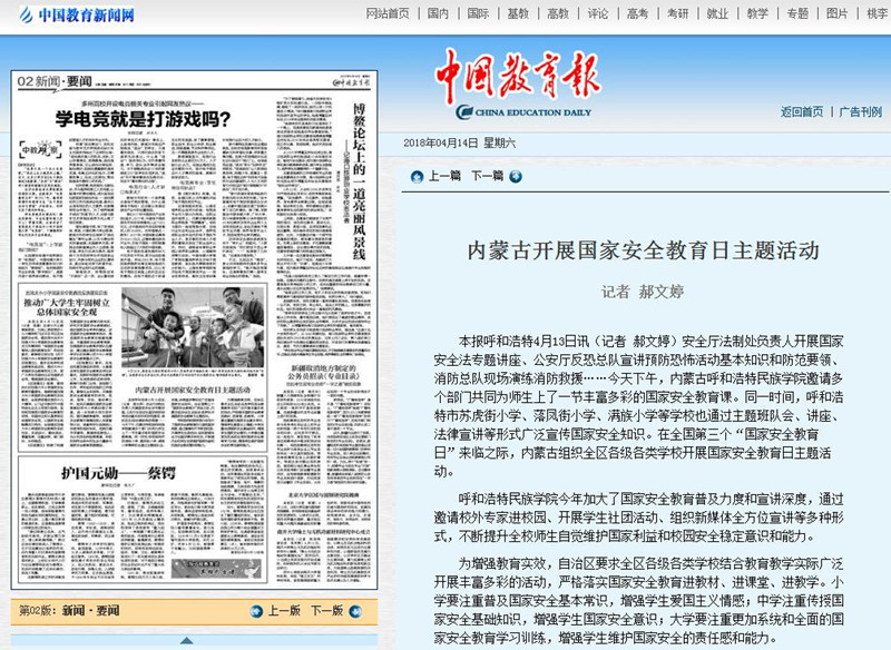 新华网、中国教育报、内蒙古电视台、《内蒙古日报》、中国教育新闻网等媒体对beat365官网开展的国家安全日活动进行了报道,正北方新闻网、新浪网等媒体进行了转载报道。
