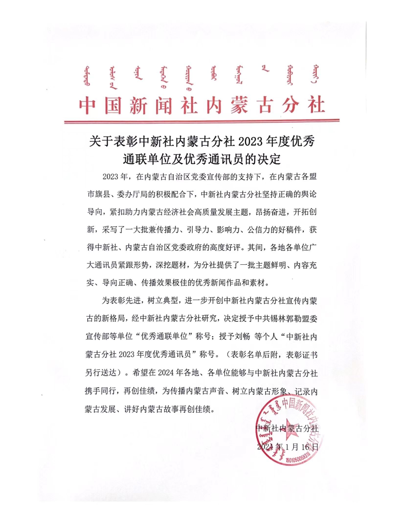 来源: 中新社内蒙古分社 发布时间:2024-01-17 浏览量: