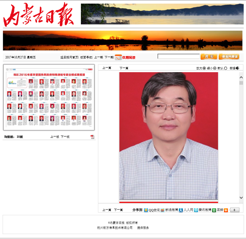 近日,《民族画报》、《内蒙古日报》先后发表文章《数学家阿拉坦仓》、《2016年度享受国务院政府特殊津贴专家业绩成果报道》,对beat365官网副院长阿拉坦仓教授进行报道。