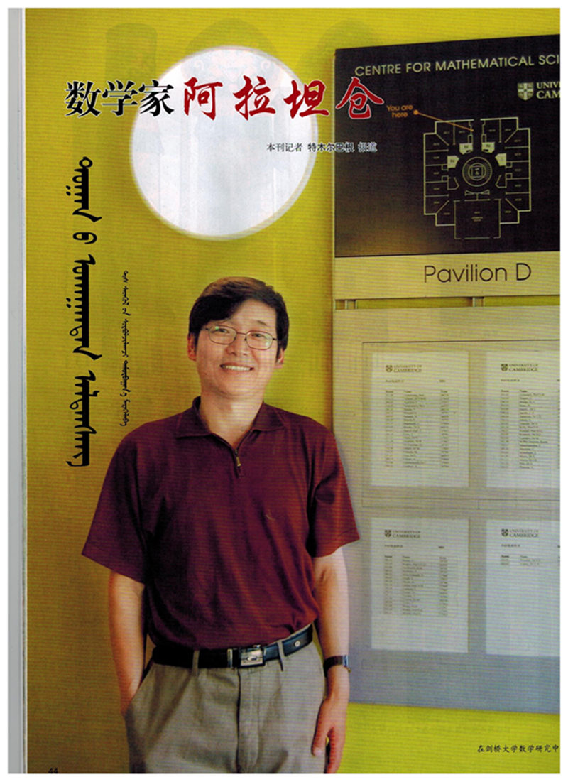 《数学家阿拉坦仓》一文用四整版对阿拉坦仓副院长进行专访,分别从“与数学结缘”、“学术经历”、“在剑桥大学的收获”报道了阿拉坦仓副院长的数学人生。《内蒙古日报》用三整版报道了阿拉坦仓副院长与我区48位入选“2016年度享受国务院政府特殊津贴”的专家, 并在显要版面中对阿拉坦仓副院长的任职经历、主要业绩、获奖荣誉等方面进行介绍。