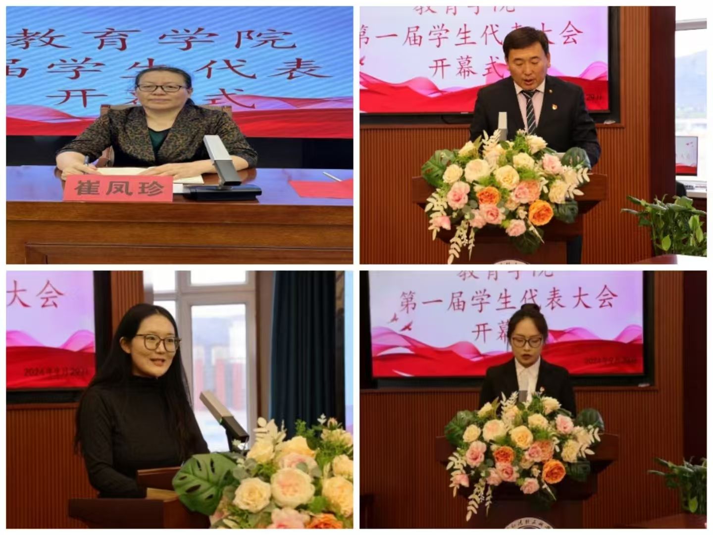 教育学院党总支部书记崔凤珍在开幕式上致辞,她对学院成立以来的学生工作给予高度评价,勉励即将产生的新一届学生会成员要坚定理想信念,勇于创新,为学院的发展贡献青春力量。