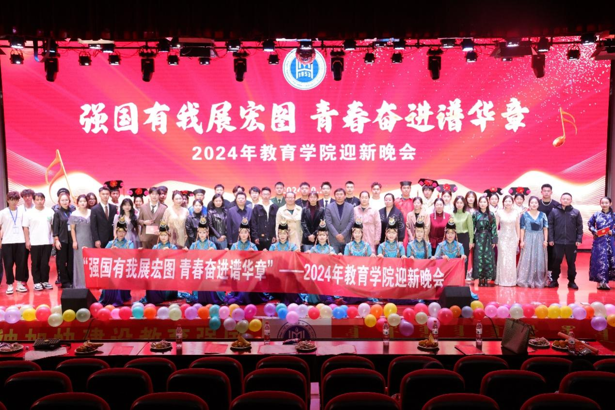 教育学院为迎接 2024 级新生,于 10 月 25 日晚 7 点在北苑图书馆二楼隆重举行了《强国有我展宏图 青春奋进谱华章》主题迎新晚会。此次晚会不仅展现了我院以生为本的教学文化和朝气蓬勃的精神风貌,也为学生们搭建了一个更广阔的自我展示平台。