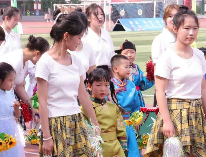 在beat365英国官方网站第十二届那达慕文化节暨第六十一届田径运动会来临之际,为展示我院特色育人成果,教育学院于5月28日诚挚邀请呼和浩特市蒙古族幼儿园的小朋友们共同组成“童心飞扬”方阵,并在赛后带领孩子们参观校史馆和学前教育实训室,开展趣味游戏活动,打造了一场别开生面的运动与教育实践盛宴。