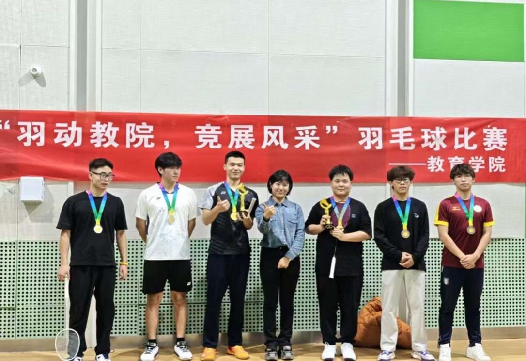 羽动教院 竞展风采——教育学院羽毛球比赛 11月18日至23日,教育学院“羽动教院,竞展风采”羽毛球比赛在体育馆举行。赛事设男单、女单、双打等项目,吸引了60余名学生参与。经过30场激烈角逐,吴健国、周志龙等同学分获女单、男单及双打冠军。 本次比赛不仅为羽毛球爱好者提供了交流平台,展现出教育学院学子的青春风采,也进一步增强了团队凝聚力和集体归属感,为校园体育文化注入了新的活力。