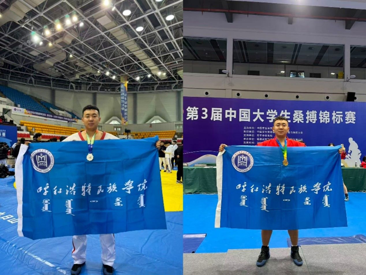 近日,教育学院2024级海木尔太分别参加了2025年11月13日至15日福建省南平市举办的第3届中国大学生桑搏锦标赛和2025年11月28日⾄30⽇内蒙古⾃治区乌兰察布市举办的第8届中国⼤学⽣中国式摔跤锦标赛 。