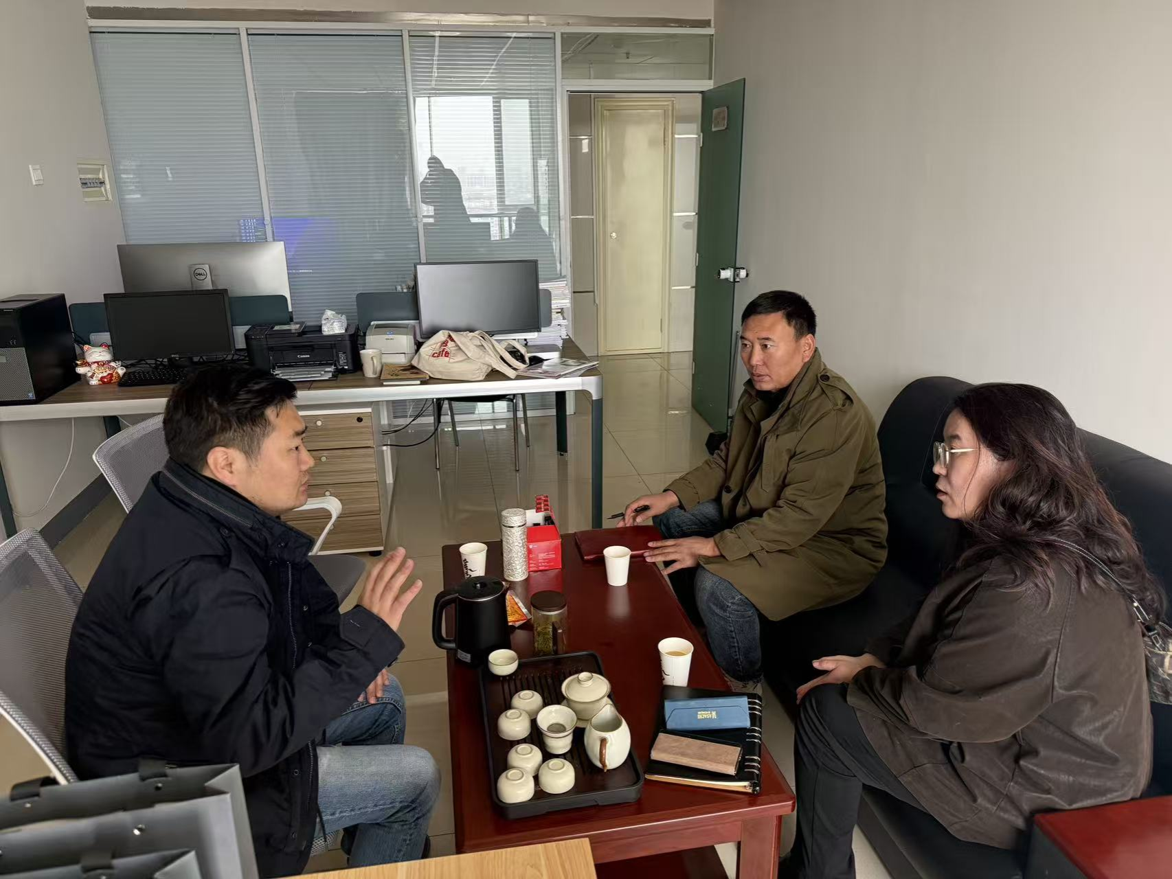 和睦力(内蒙古)教育咨询有限公司负责人对学院一行表示热烈欢迎,简要介绍了公司的发展历程、业务布局及未来规划,重点围绕毕业生就业方面表达了与学院深化合作的意愿。威娜对公司的热情接待表示感谢,并简要介绍了教育学院近年来的发展成效。她希望与公司在毕业生就业岗位、职业生涯规划指导等方面加强合作,共同推动大学生高质量就业,服务地方经济社会发展贡献力量。