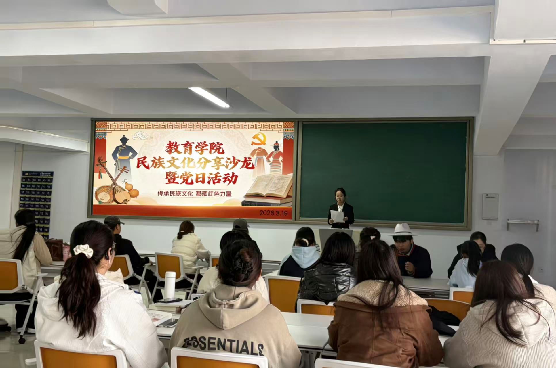 为深入学习贯彻党的民族政策,传承弘扬中华优秀传统文化,进一步铸牢中华民族共同体意识,3月19日,教育学院在都林楼306举办民族文化分享沙龙暨党日活动,团总支书记常志君、学工办副主任高牧涵、辅导员智重洋及各民族学生代表共同参与活动。