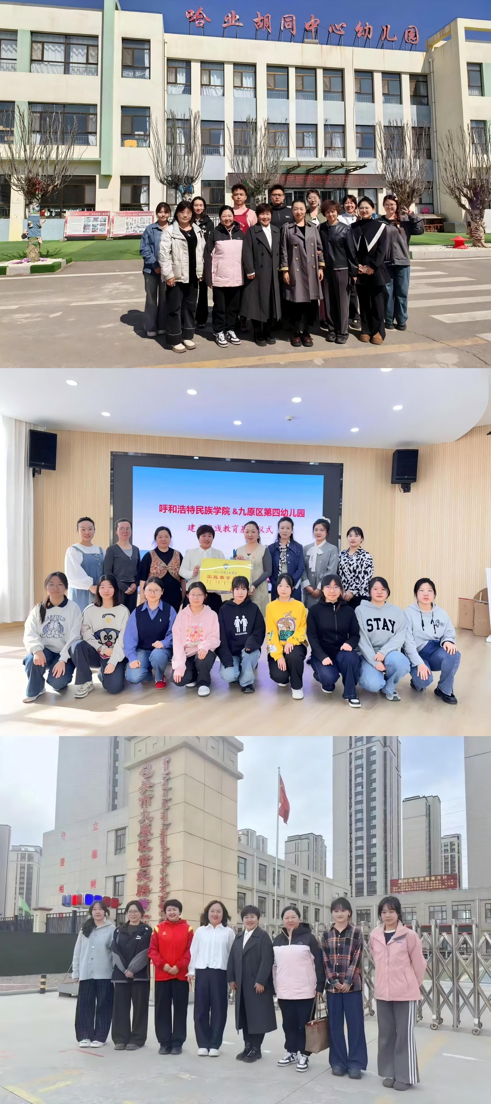 此次在包头九原区建立两所实践教学基地并回访实习生的活动,是我院积极推进协同育人、提升人才培养质量的重要举措。通过与优质幼儿园的深度合作,不仅为学生提供了更广阔的实践平台,也为学院了解行业需求、改进教学方法提供了有力依据。未来,教育学院将继续拓展与更多优质幼教机构的合作,不断完善实践教学体系,为学前教育专业学生的成长成才创造更有利的条件,为内蒙古自治区学前教育事业的高质量发展贡献更多力量 。