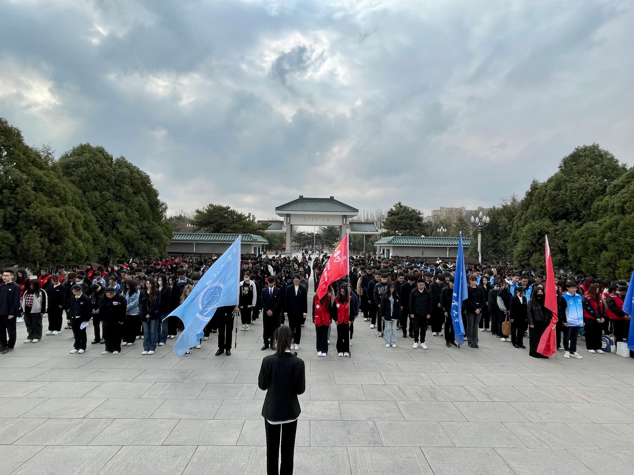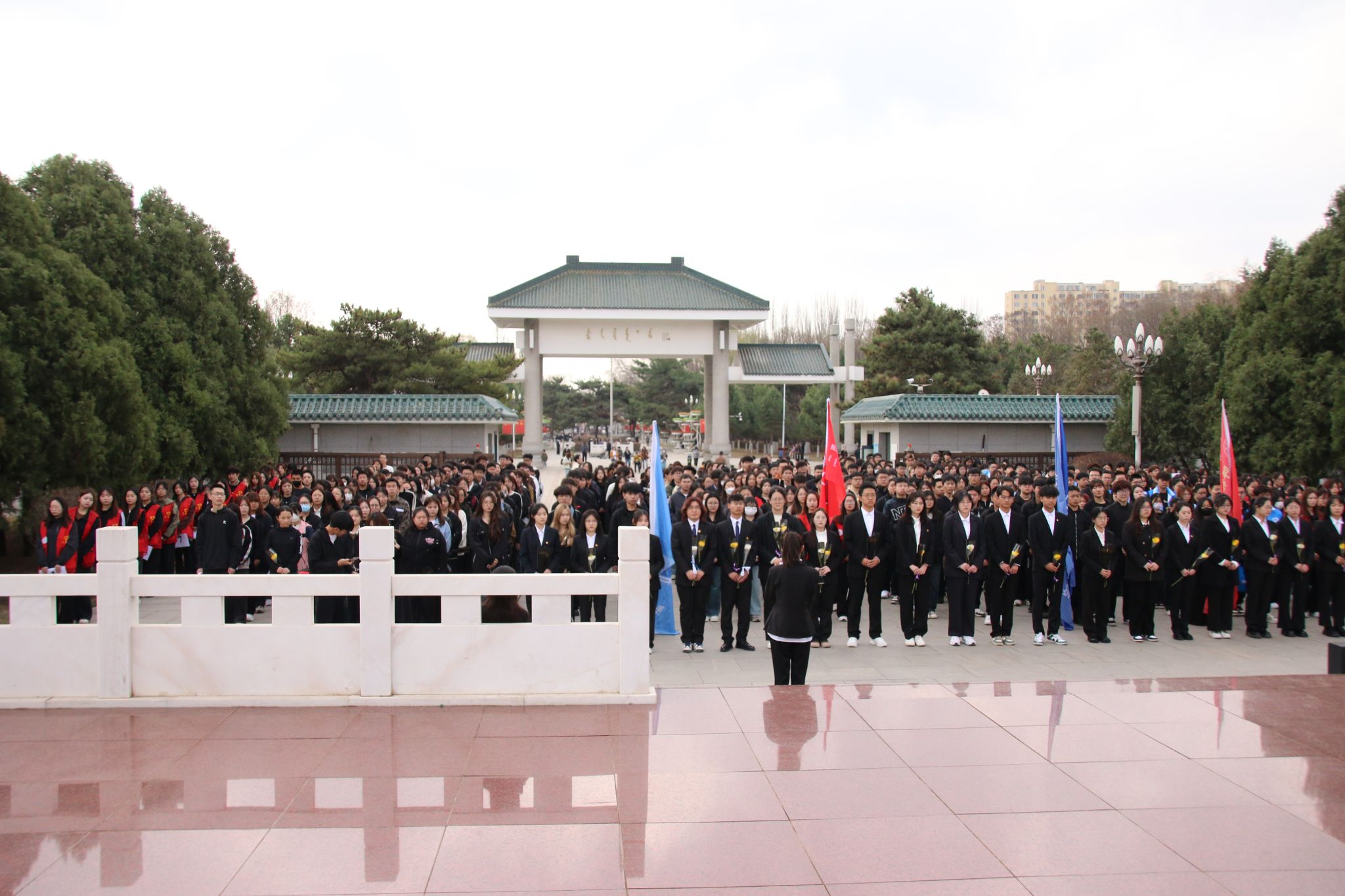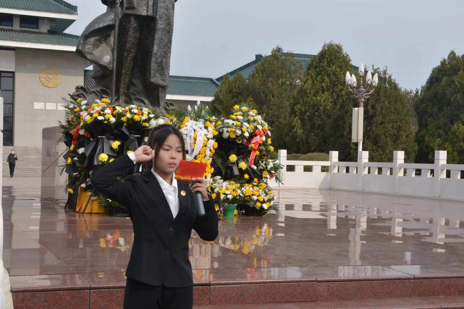 活动第一项,青年志愿者们整齐列队,肃立在乌兰夫同志铜像前。随着庄重的国歌响起,祭奠活动正式开始。