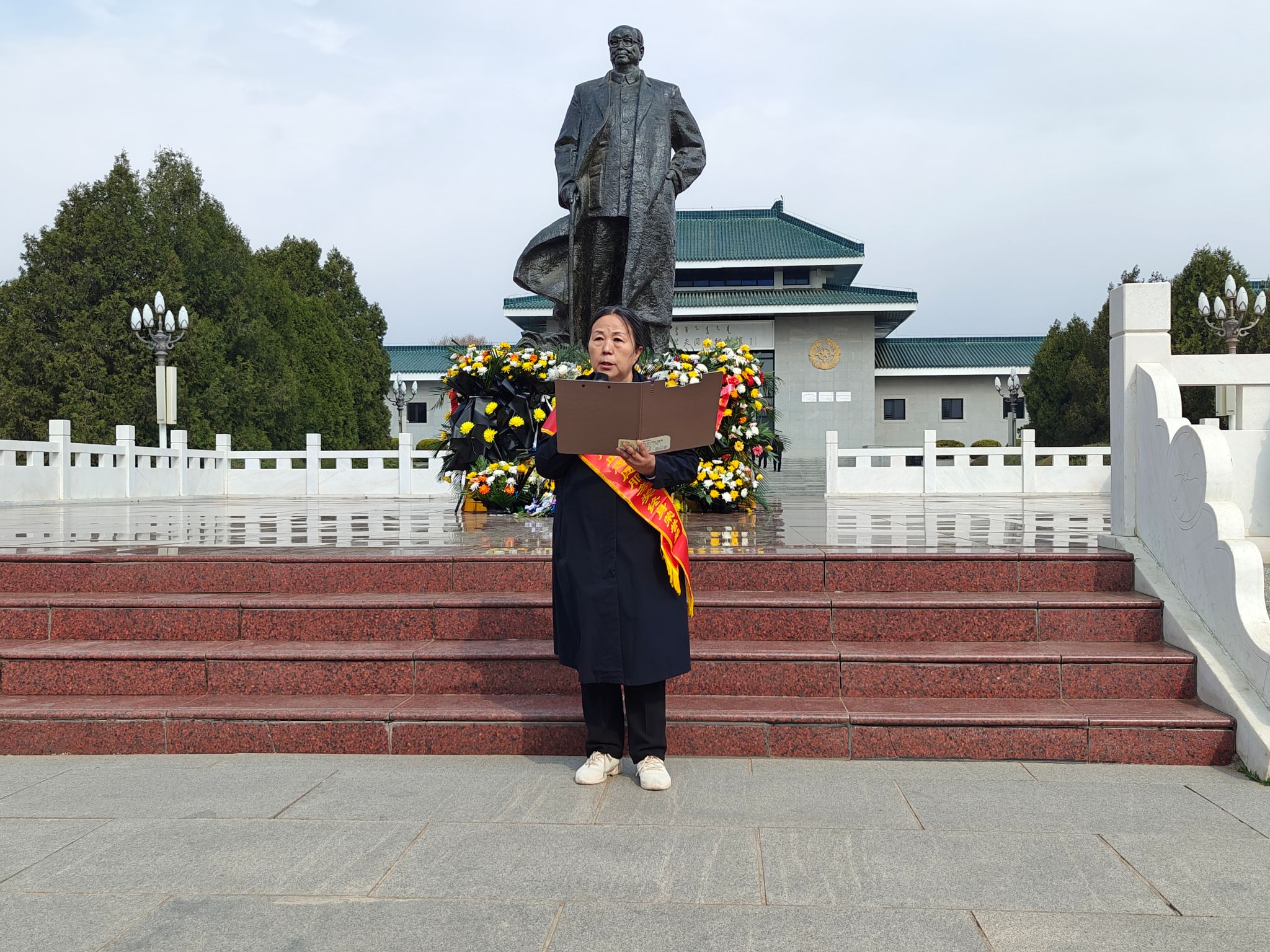 活动第三项,大家肃立默哀,向乌兰夫同志铜像三鞠躬,表达对革命先烈的深深怀念和崇高敬意。