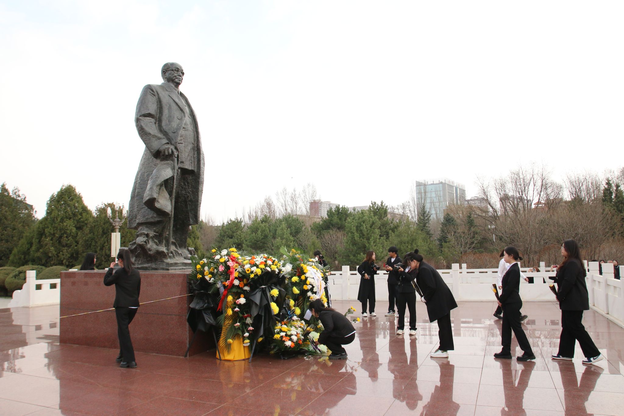 活动第二项,各高校的青年志愿者代表手持鲜花,缓缓走向乌兰夫同志铜像前,将鲜花敬献给乌兰夫等老一辈无产阶级革命家。