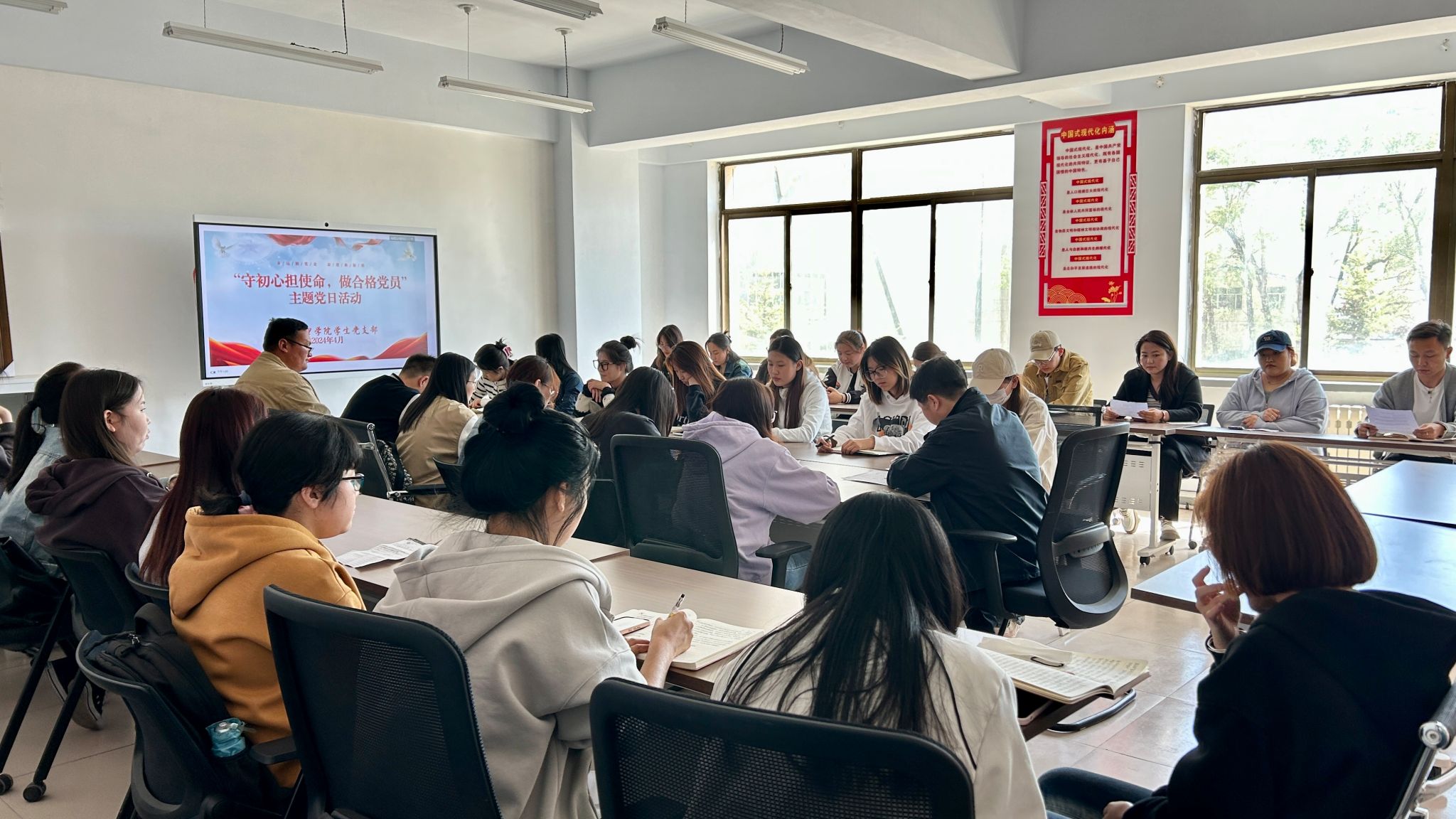 最后,华国庆进行总结,并对支部学生党员提出三点要求:一是作为新时代学生党员要不忘初心,二是政治素养和业务能力要提高,三是要做勤善思考、严于律己、热于奉献的党员。