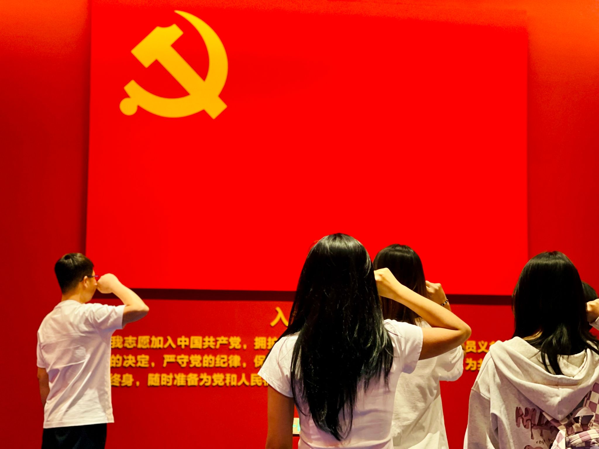 活动的最后,在华国庆老师的带领下,全体师生党员面对党旗郑重宣誓,活动在铿锵有力的宣誓声中落下帷幕。