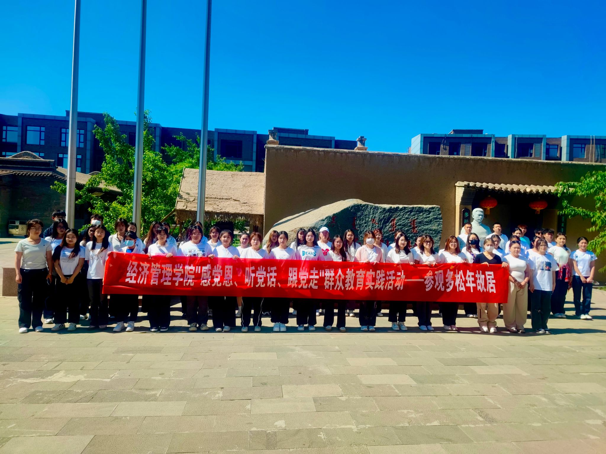 通过瞻仰多松年烈士故居和陈列馆,观看烈士遗物、珍贵手稿、纪实图片和视频资料,从不同的角度了解了革命烈士多松年同志的光辉事迹了解到多松年烈士不畏艰险、勇于斗争的英雄事迹,对多松年这位伟大革命烈士的浩然正气和铮铮铁骨深深感动。参观过程中,同学们认真聆听讲解员的讲解,并进行相互交流学习革命先烈崇高的思想品格和道德情操。
