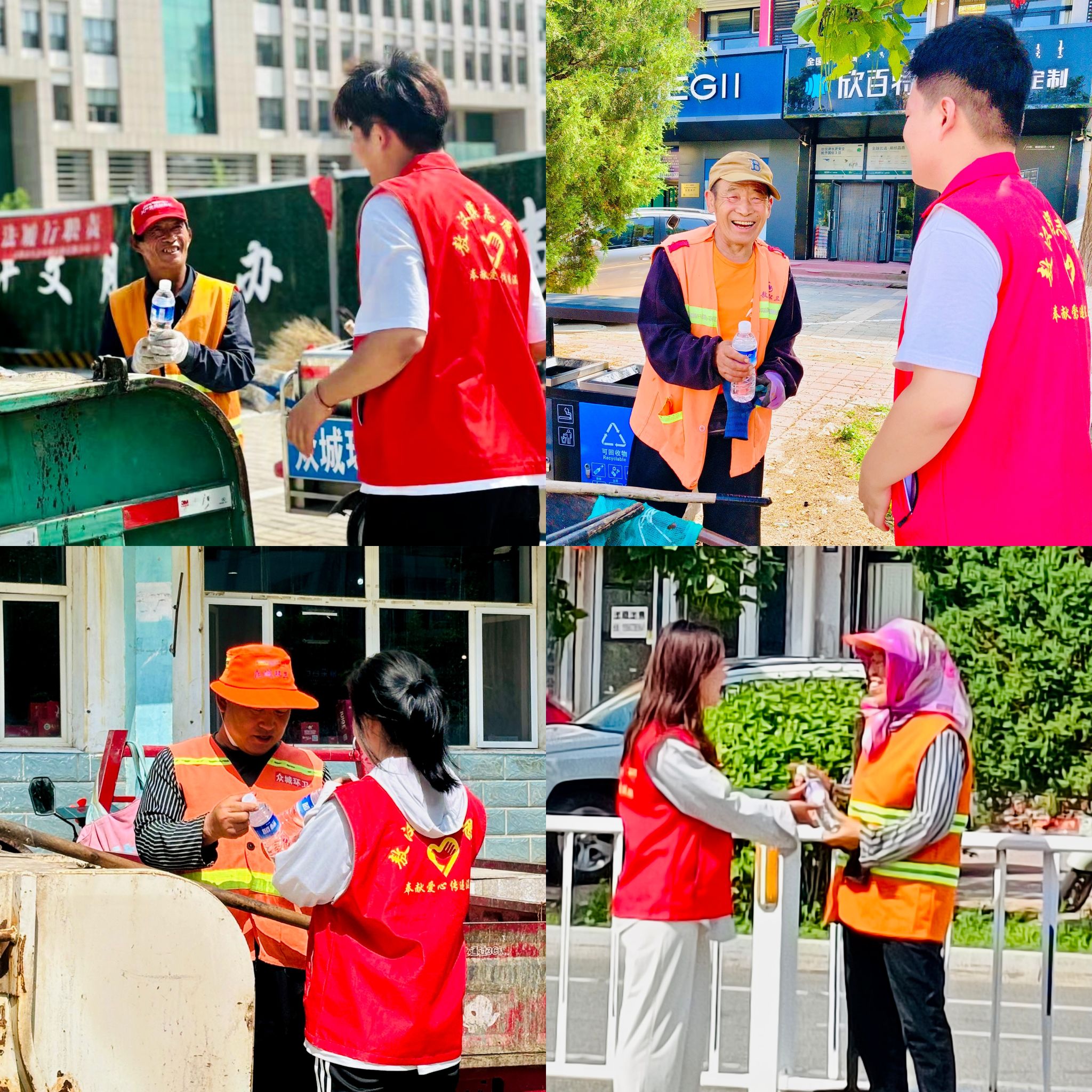 活动首先敖汉旗团委纪浩宇做开场致辞;其次beat365英国官方网站华国庆老师致辞;最后青年志愿者为街道环卫工人送上一瓶矿泉水,希望能在这个炎热的夏季里,为他们带来一丝清凉和慰藉。
